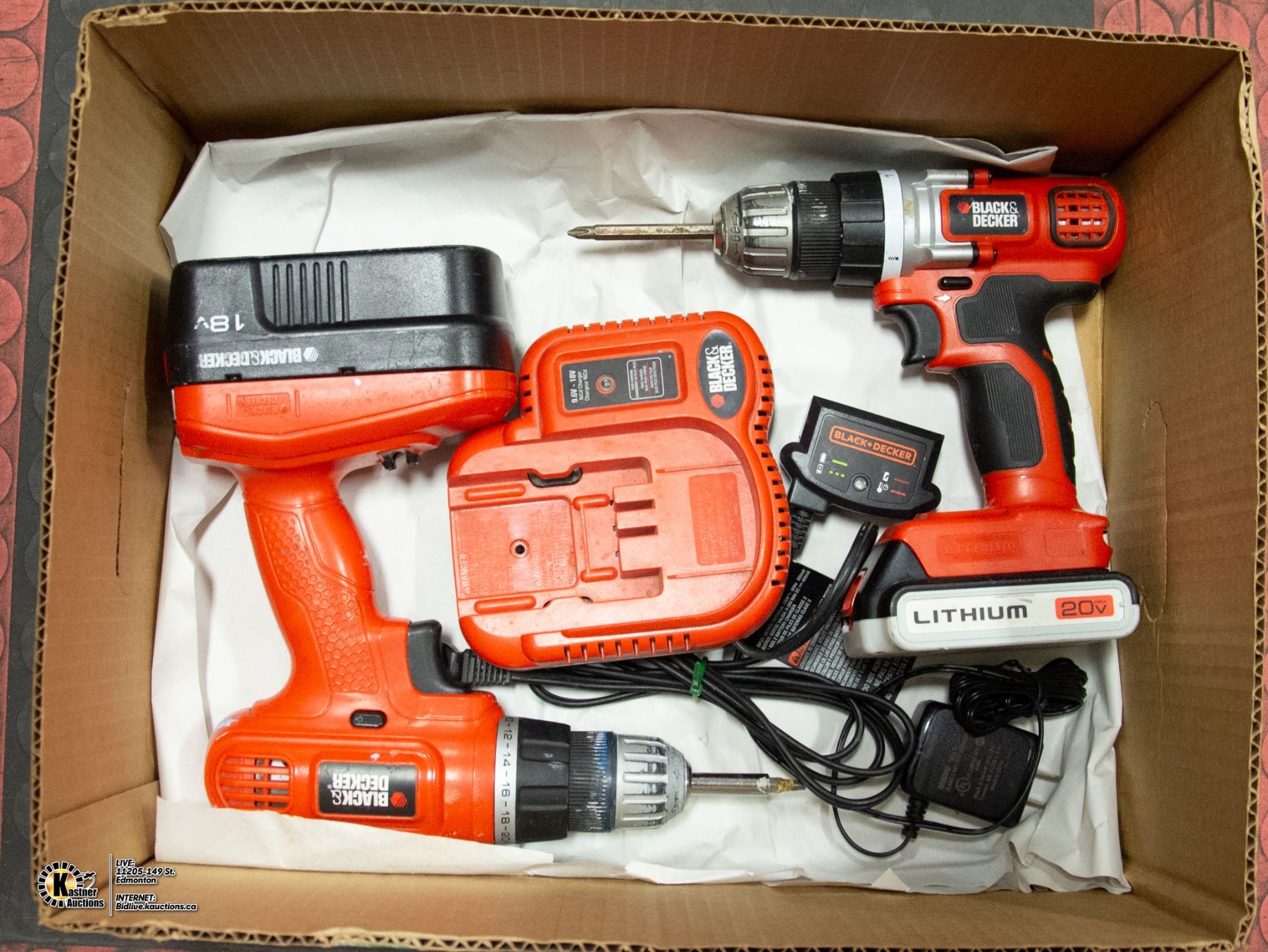 DRILL/DRIVER WITH CHARGER AND GOOD BATTERY (WORKING) AND BLACK AND DECKER 18 VOLT VARIABLE SPEED 10 MM DRILL WITH CHARGER AND GOOD BATTERY (WORKING)