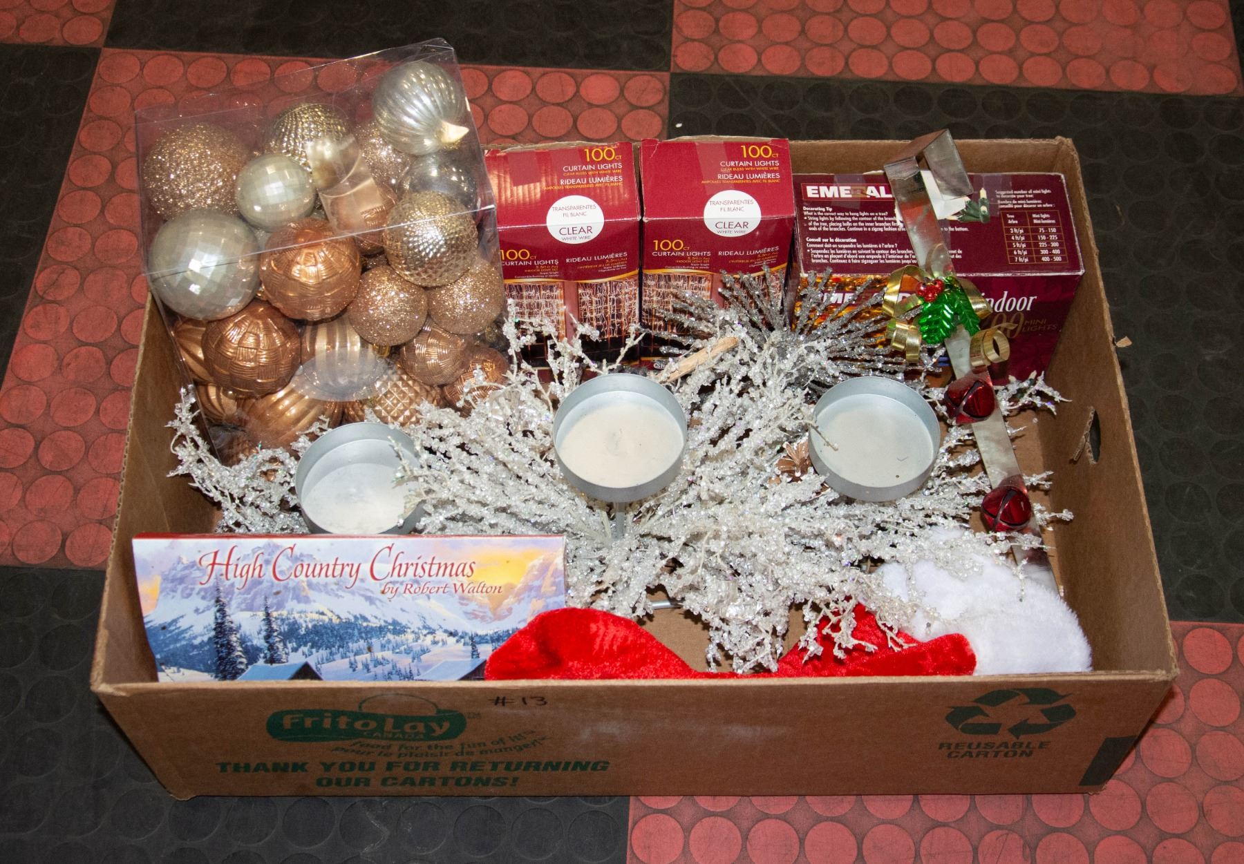 200 EMERALD MINI INDOOR LIGHTS, 2 BOXES OF 100 CURTAIN LIGHTS, HIGH COUNTRY STYLE CHRISTMAS CARDS, TREE TOPPER, WREATH HANGER, TREE ORNAMENT BALLS, TABLE-TOP 3 VOTIVE/CANDLE HOLDER, ETC. **ALL ITEMS MUST BE REMOVED BY 5PM SATURDAY, DECEMBER 2ND 2023. ALL REMAINING ITEMS WILL BE SUBJECT TO A $6.00 PER DAY STORAGE CHARGE. ANY ITEMS REMAINING AFTER MONDAY, DECEMBER 18TH, 2023 WILL BE CONSIDERED FORFEITED. NO REFUNDS WILL BE ISSUED FOR FORFEITED ITEMS. TO SCHEDULE A PICK UP APPOINTMENT CLICK HERE