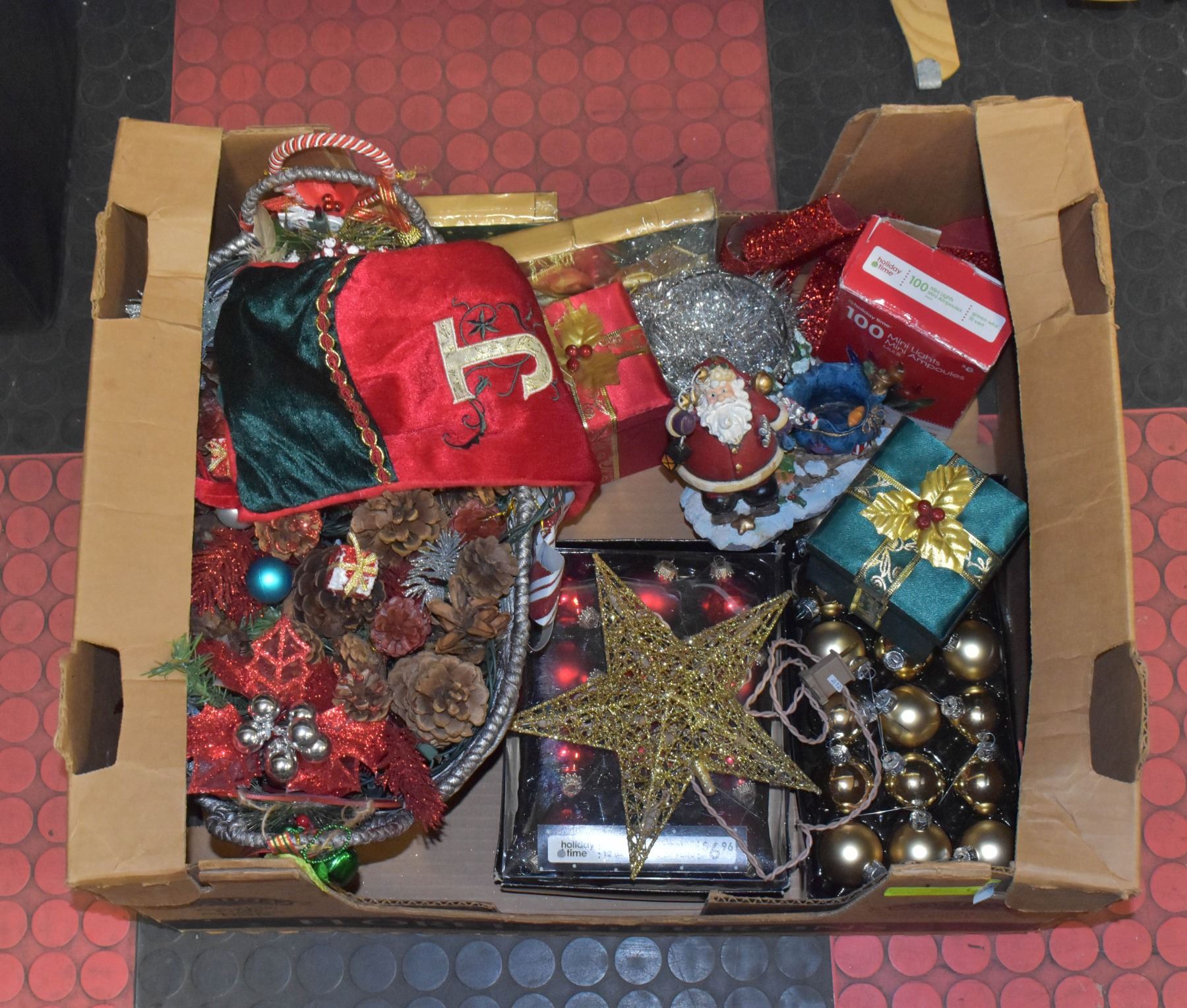 LIGHT-UP BASKET, 2 BOXES OF TREE BULBS, TREE STAR, 100 INDOOR MINI LIGHTS, DECORATIVE BOXES, ETC. **ALL ITEMS MUST BE REMOVED BY 5PM SATURDAY, DECEMBER 3RD, 2022. ALL REMAINING ITEMS WILL BE SUBJECT TO A $6.00 PER DAY STORAGE CHARGE. ANY ITEMS REMAINING AFTER MONDAY, DECEMBER 18TH, 2022 WILL BE CONSIDERED FORFEITED. NO REFUNDS WILL BE ISSUED FOR FORFEITED ITEMS. TO SCHEDULE A PICK UP APPOINTMENT CLICK HERE
