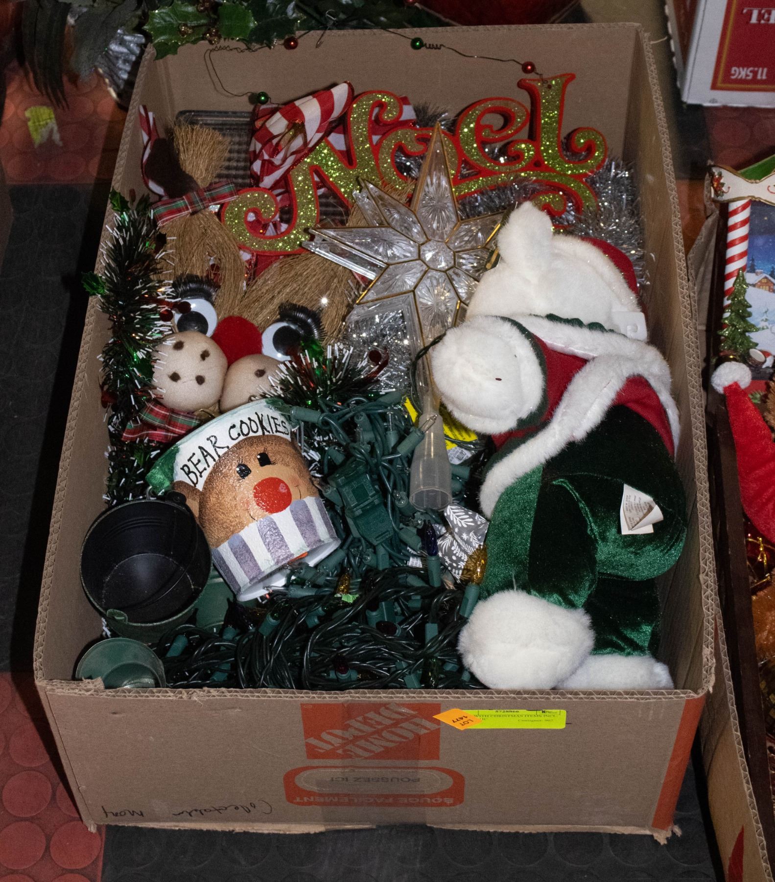 CHRISTMAS LIGHTED DECOR, SILVER & COLOURFUL GARLAND, WHITE CHRISTMAS TEDDY BEAR, CHRISTMAS LIGHTS & MULTI-COLOUR LED LIGHTS AND MORE DECOR
