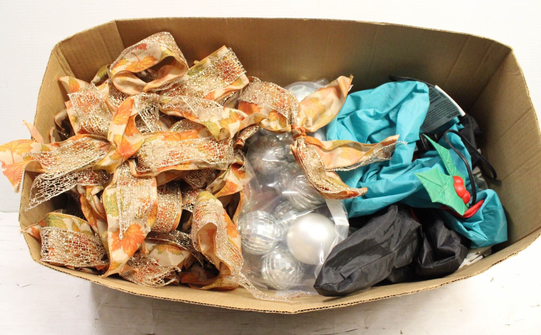 INFLATABLE OUTDOOR DECORATION, LOT OF CHRISTMAS TREE BOWS, TREE BULBS **ALL ITEMS MUST BE REMOVED BY 5PM SATURDAY, NOVEMBER 30TH 2024. ALL REMAINING ITEMS WILL BE SUBJECT TO A $6.00 PER DAY STORAGE CHARGE. ANY ITEMS REMAINING AFTER MONDAY, DECEMBER 16TH 2024 WILL BE CONSIDERED FORFEITED. NO REFUNDS WILL BE ISSUED FOR FORFEITED ITEMS. TO SCHEDULE A PICK UP APPOINTMENT CLICK HERE