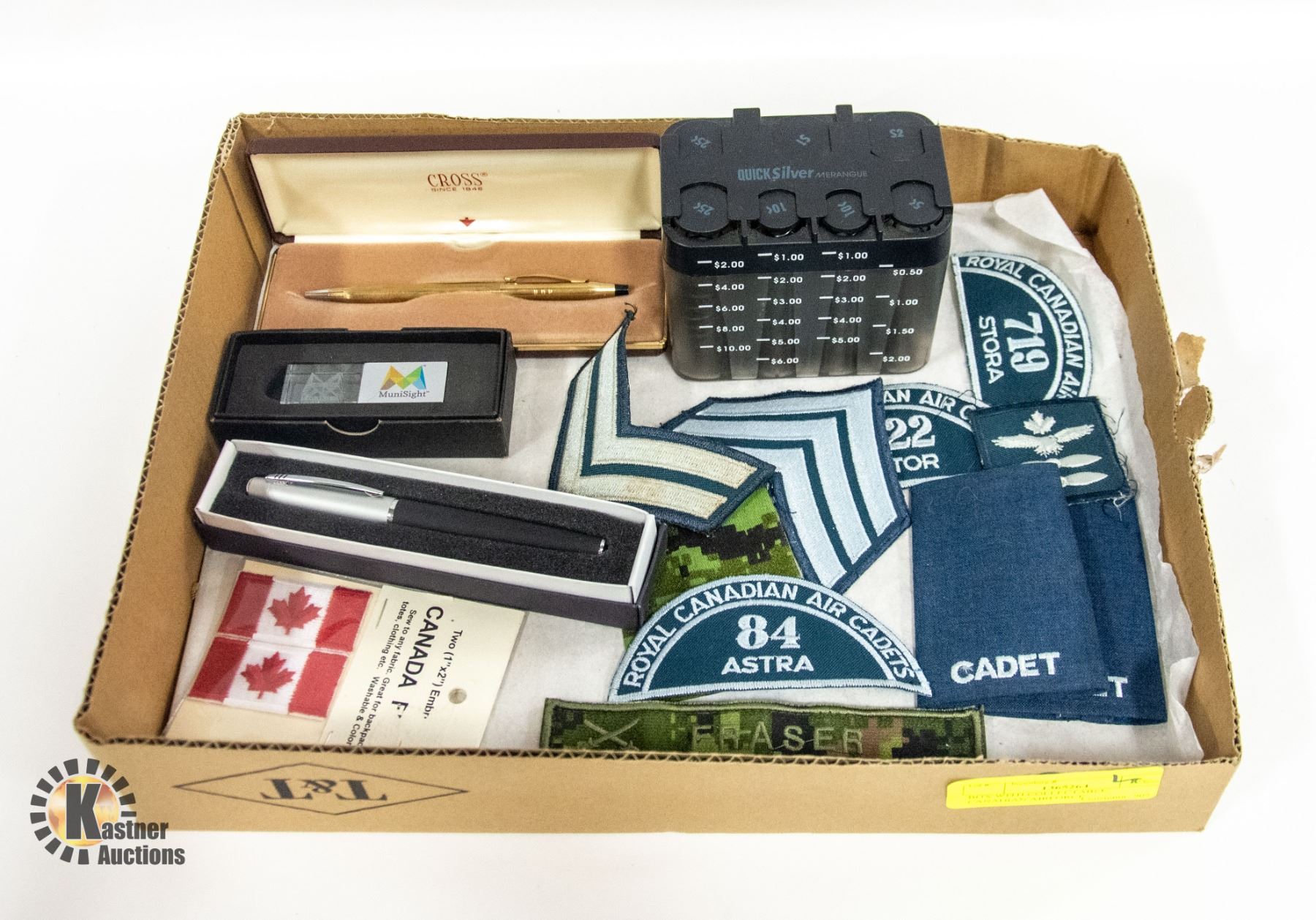 PATCHES, 2 QUALITY PENS, CRYSTAL USB THUMB DRIVE AND A CHANGE STORAGE CASE HOLDS 5 CENTS UP TO $2 **ALL ITEMS MUST BE REMOVED BY 5PM SATURDAY, DECEMBER 7TH 2024. ALL REMAINING ITEMS WILL BE SUBJECT TO A $6.00 PER DAY STORAGE CHARGE. ANY ITEMS REMAINING AFTER MONDAY, DECEMBER 23RD 2024 WILL BE CONSIDERED FORFEITED. NO REFUNDS WILL BE ISSUED FOR FORFEITED ITEMS. TO SCHEDULE A PICK UP APPOINTMENT CLICK HERE