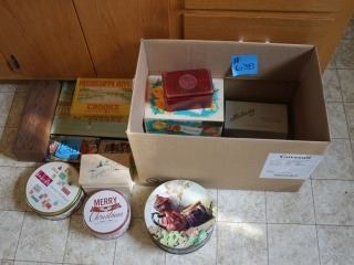 BOX WITH COLLECTOR TINS, BOXES, BOOKS