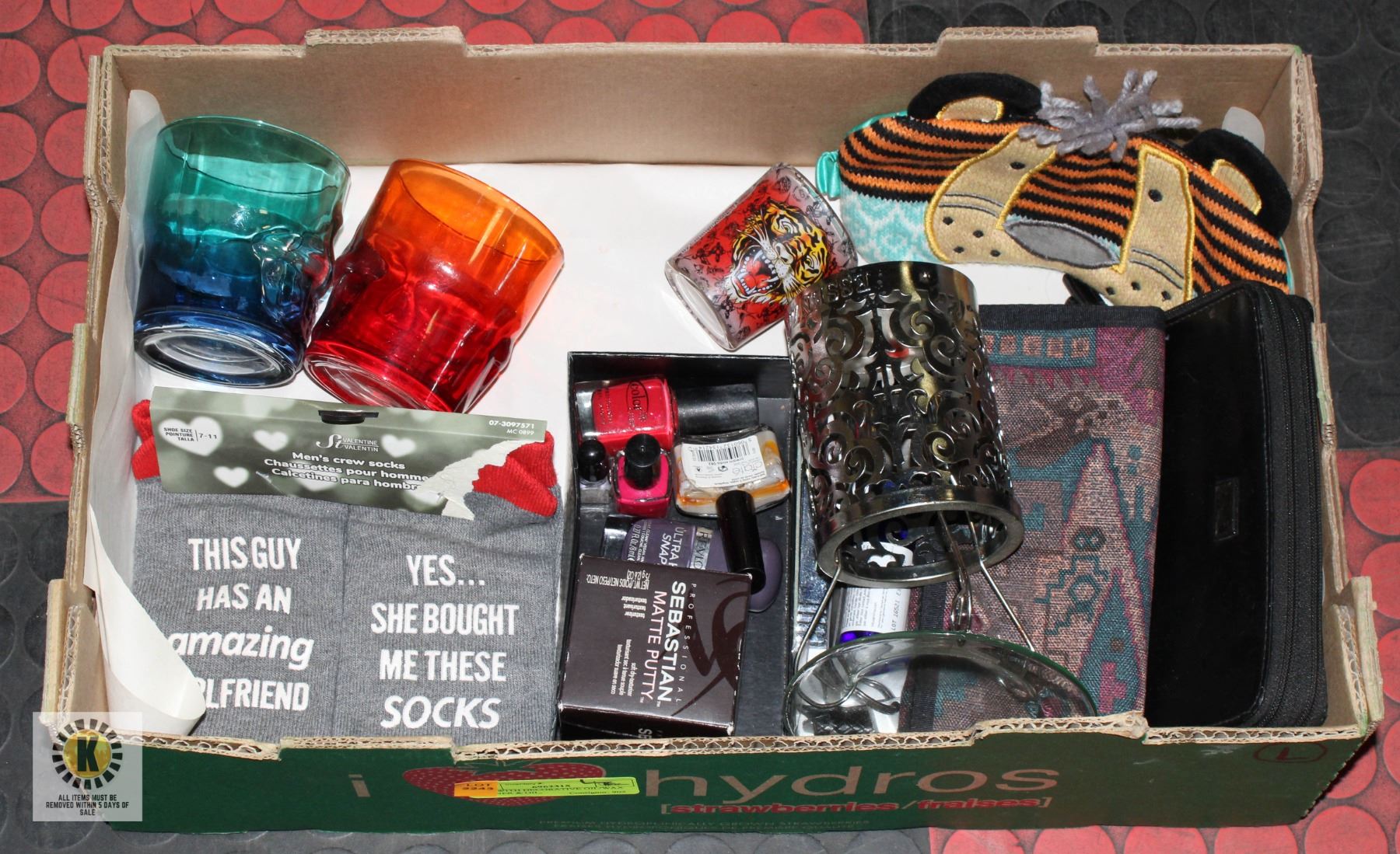 NAIL POLISH, NEW MEN'S CREW SOCKS (7-11), 2 SKULL GLASSES, LION NIGHT-TIME EYE COVER, SEBASTIAN MATTE PUTTY, LEATHER KEY HOLDER, 2 WALLETS & MORE **ALL ITEMS MUST BE REMOVED BY 5PM SATURDAY, APRIL 3RD 2025. ALL REMAINING ITEMS WILL BE SUBJECT TO A $6.00 PER DAY STORAGE CHARGE. ANY ITEMS REMAINING AFTER MONDAY, MAY 19TH 2025 WILL BE CONSIDERED FORFEITED. NO REFUNDS WILL BE ISSUED FOR FORFEITED ITEMS. TO SCHEDULE A PICK UP APPOINTMENT CLICK HERE