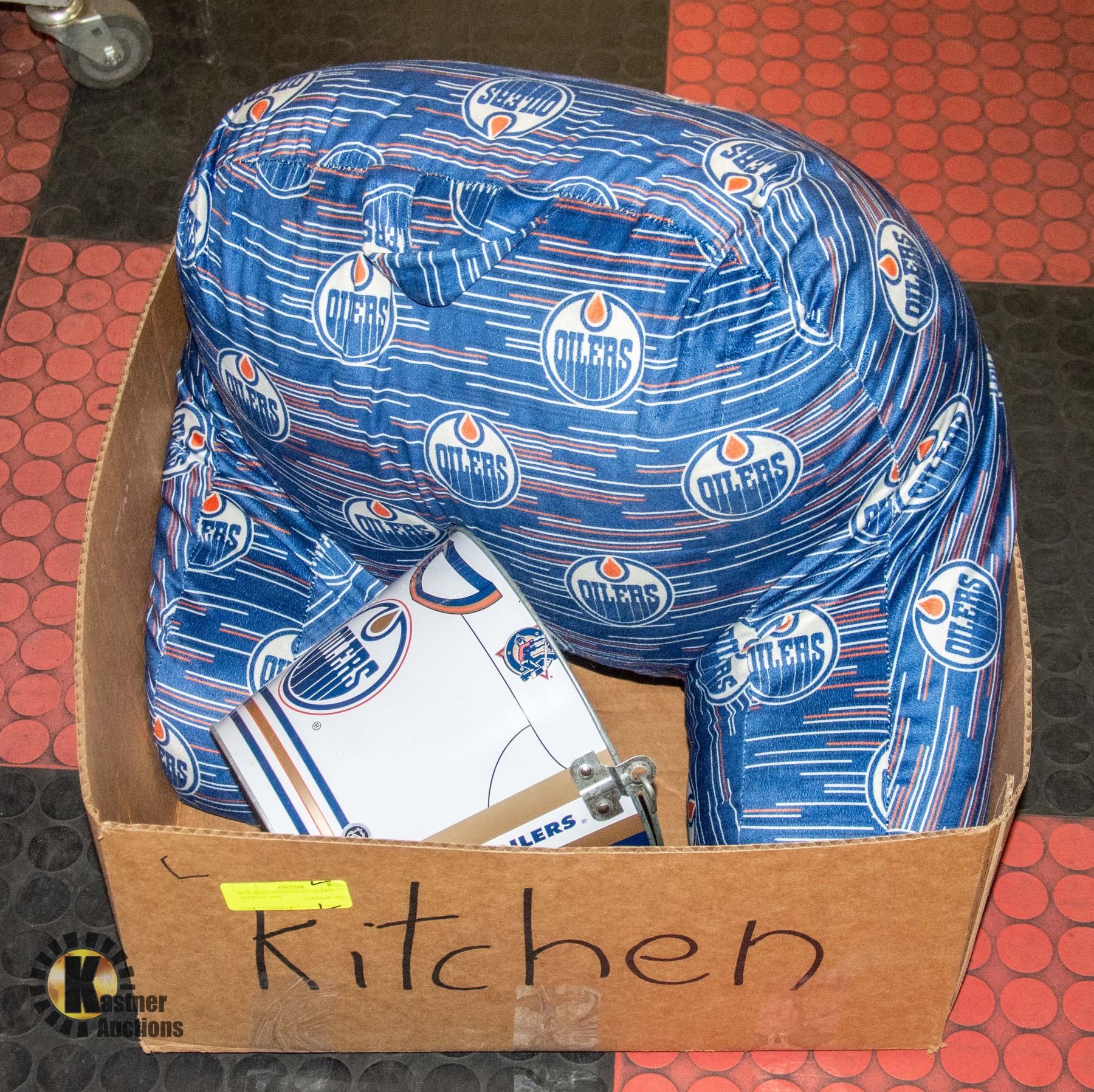 PADDED-BACK AND ARM REST PILLOW AND OILER'S GALVANIZED METAL ICE BUCKET **ALL ITEMS MUST BE REMOVED BY 5PM SATURDAY, OCTOBER 5TH 2024. ALL REMAINING ITEMS WILL BE SUBJECT TO A $6.00 PER DAY STORAGE CHARGE. ANY ITEMS REMAINING AFTER MONDAY, OCTOBER 21ST 2024 WILL BE CONSIDERED FORFEITED. NO REFUNDS WILL BE ISSUED FOR FORFEITED ITEMS. TO SCHEDULE A PICK UP APPOINTMENT CLICK HERE
