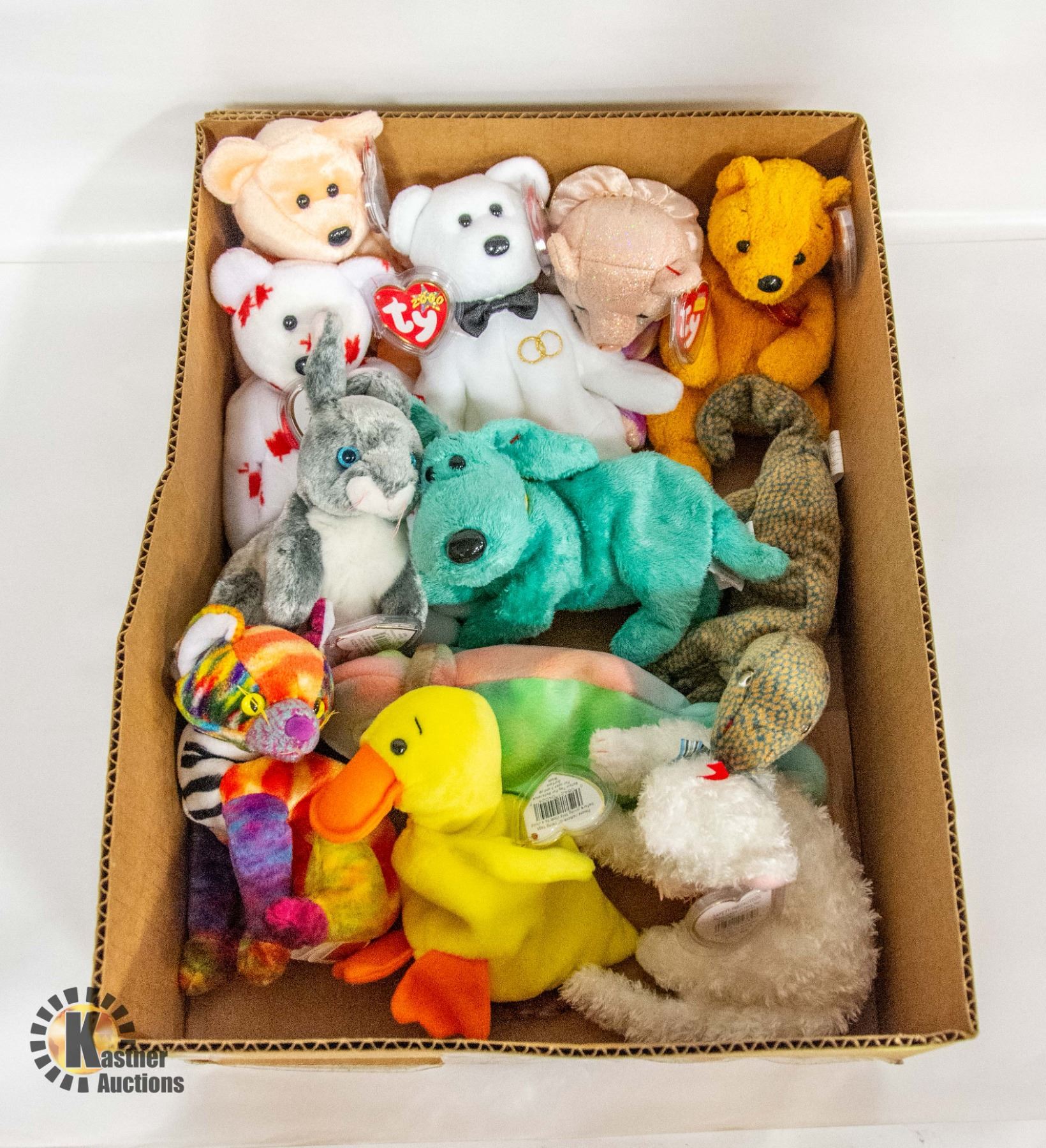 VARIOUS BEARS, LIZARD, DOG, RAINBOW IGUANA, BUNNY, RAINBOW CAT, DUCK, KITTY, ETC. ALL WITH NAME TAGS - (12 COUNT) **ALL ITEMS MUST BE REMOVED BY 5PM SATURDAY, JULY 15TH 2023. ALL REMAINING ITEMS WILL BE SUBJECT TO A $6.00 PER DAY STORAGE CHARGE. ANY ITEMS REMAINING AFTER MONDAY, JULY 31ST, 2023 WILL BE CONSIDERED FORFEITED. NO REFUNDS WILL BE ISSUED FOR FORFEITED ITEMS. TO SCHEDULE A PICK UP APPOINTMENT CLICK HERE