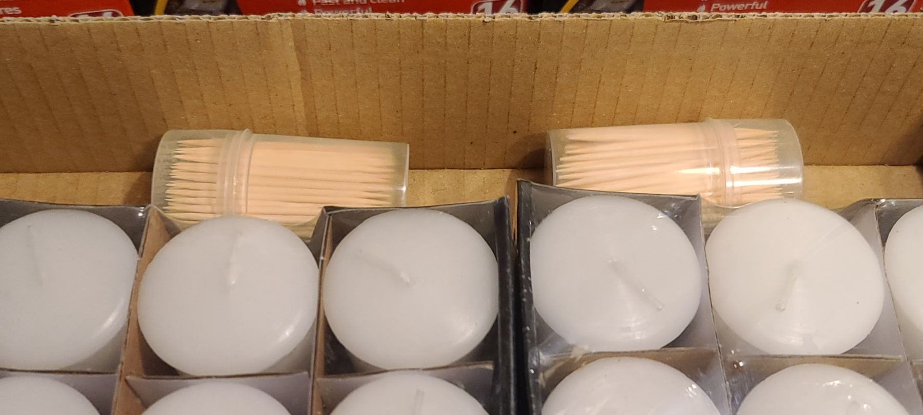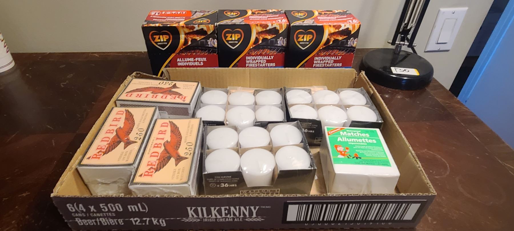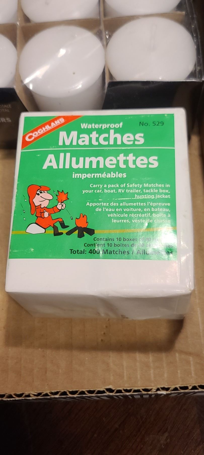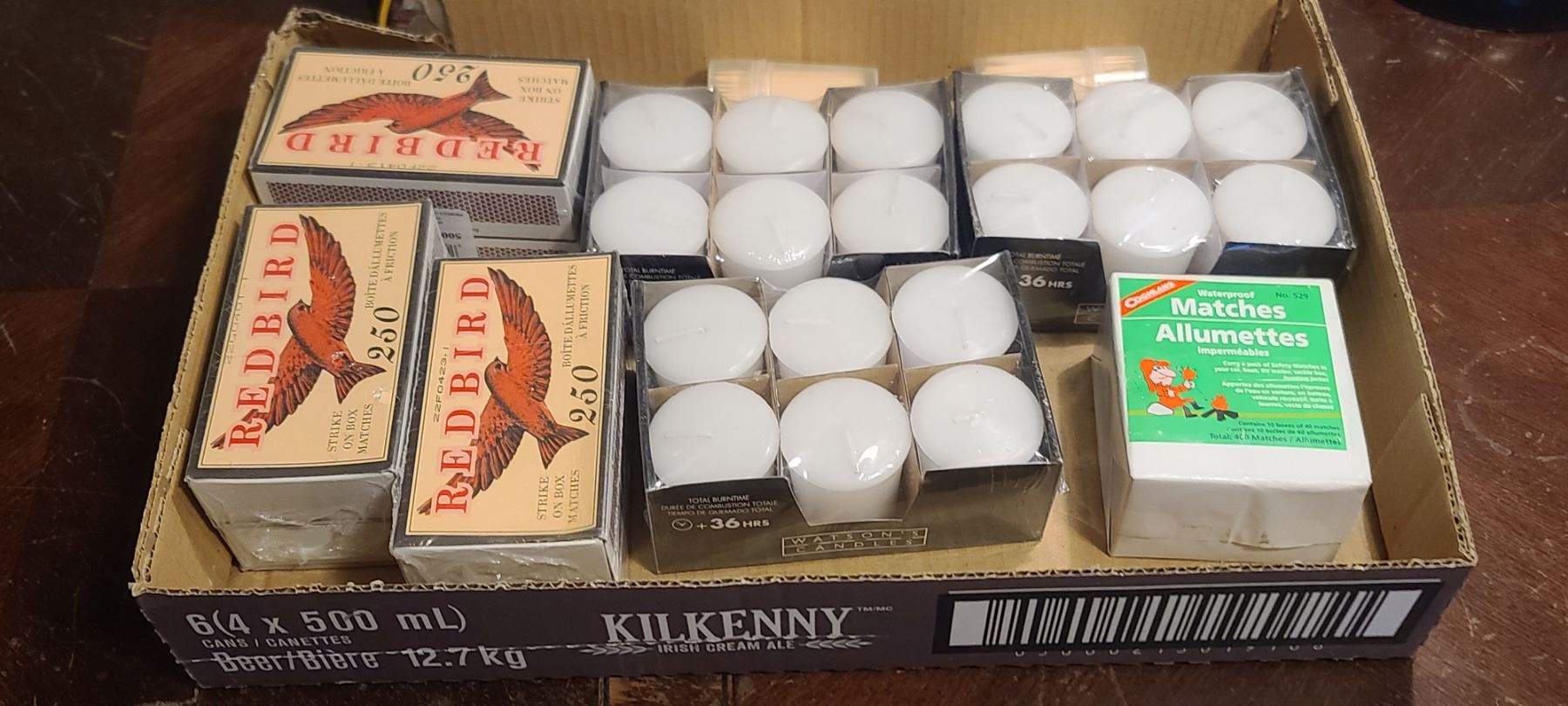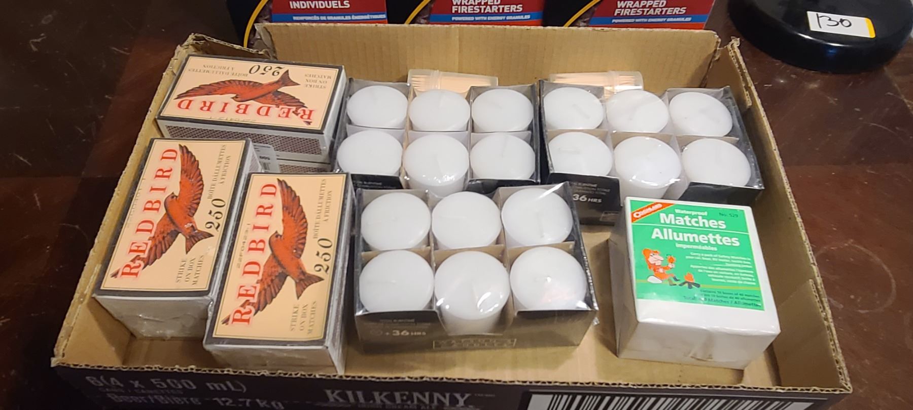 BOX WITH FIRE STATERS, TEA LIGHTS, MATCHES