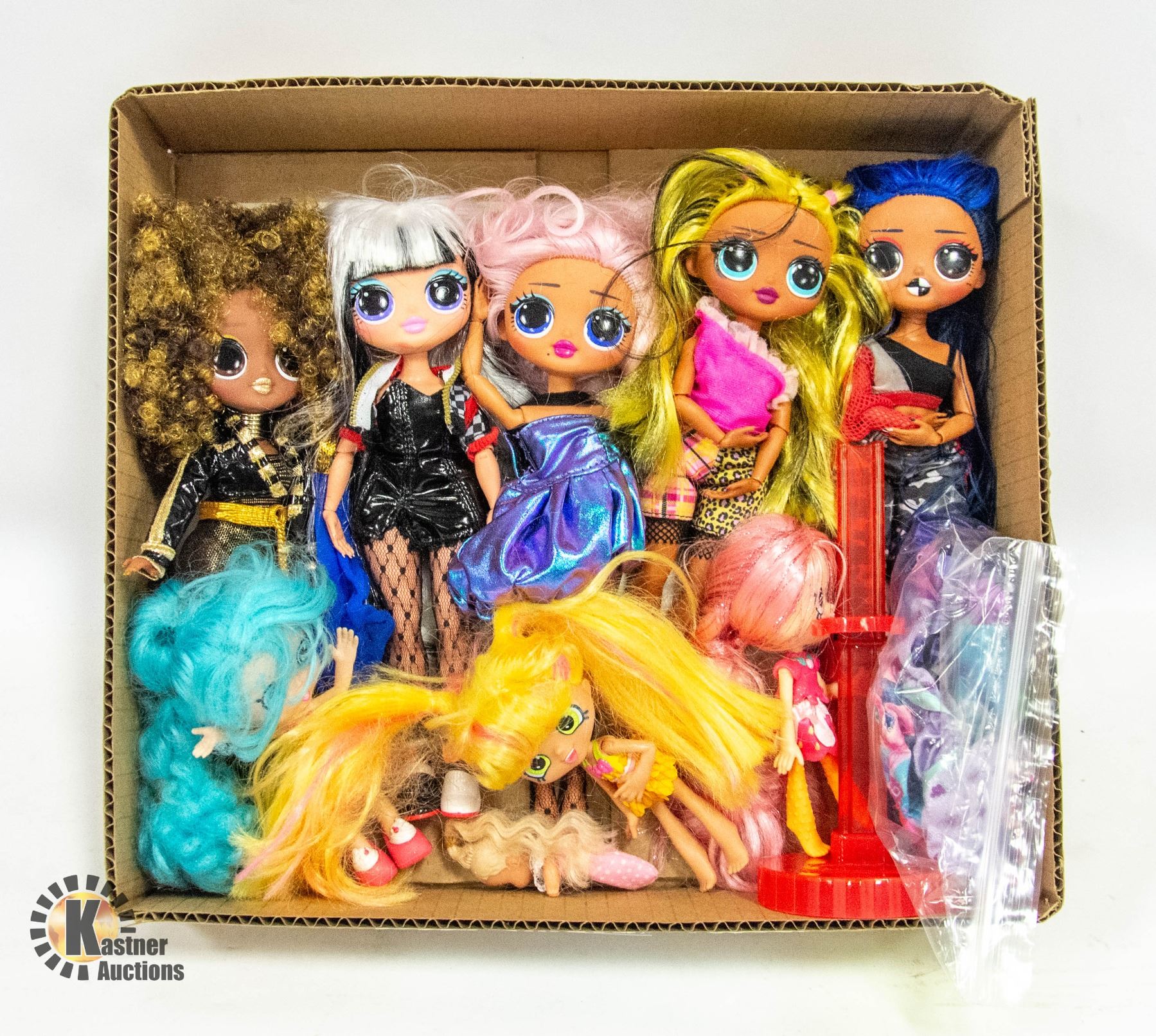 DOLLS WITH BAG OF CLOTHS AND THREE 5"-LOL SURPRISE DOLLS & A STAND **ALL ITEMS MUST BE REMOVED BY 5PM SATURDAY, JULY 29TH 2023. ALL REMAINING ITEMS WILL BE SUBJECT TO A $6.00 PER DAY STORAGE CHARGE. ANY ITEMS REMAINING AFTER MONDAY, AUGUST 14TH, 2023 WILL BE CONSIDERED FORFEITED. NO REFUNDS WILL BE ISSUED FOR FORFEITED ITEMS. TO SCHEDULE A PICK UP APPOINTMENT CLICK HERE