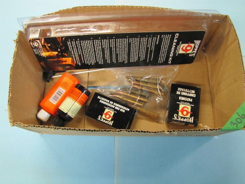 BOX WITH GUN CLEANING KIT & MISC 303 RNDS