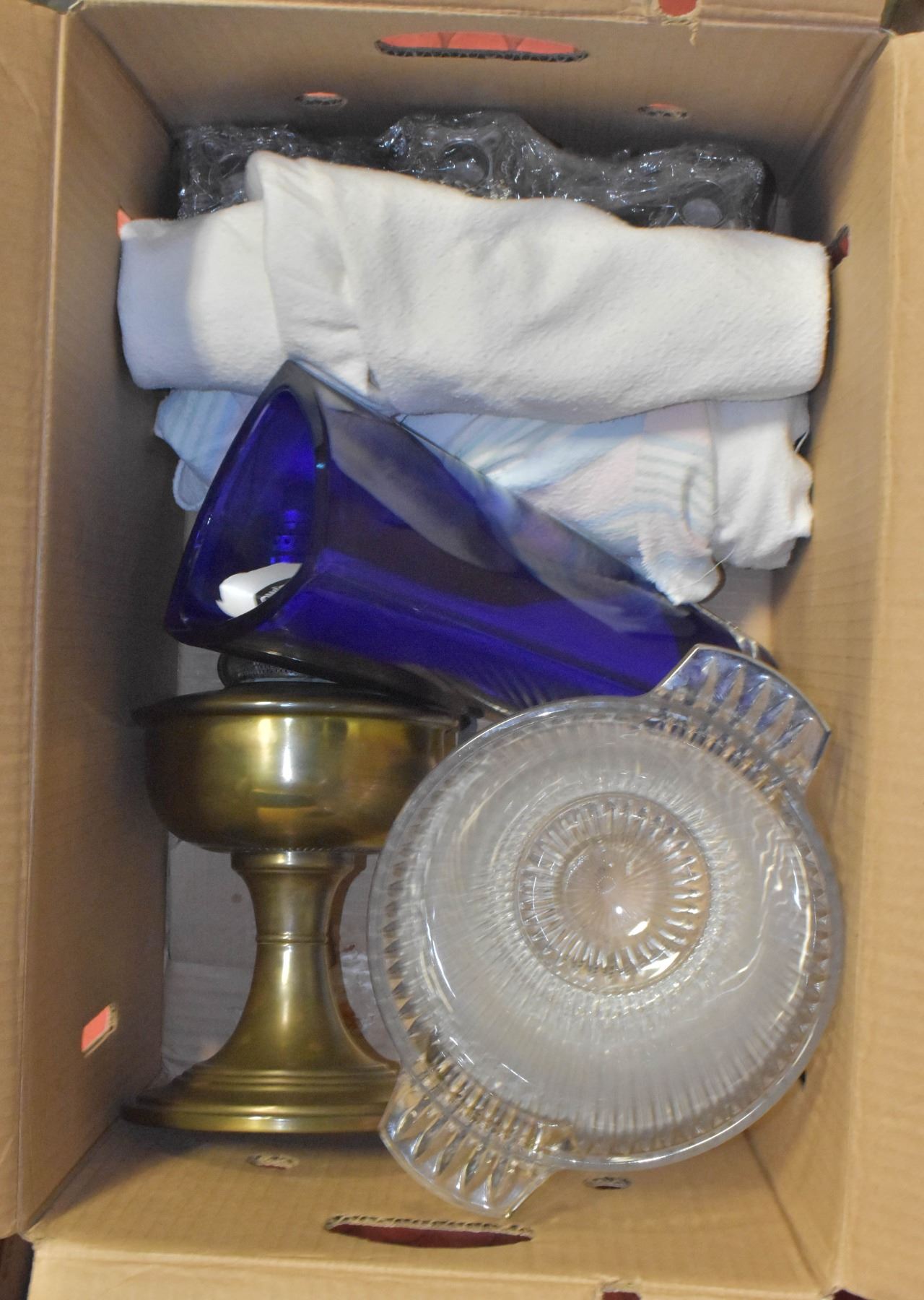 BOX WITH ICE BUCKET, TALL BRASS OIL LANTERN, 3