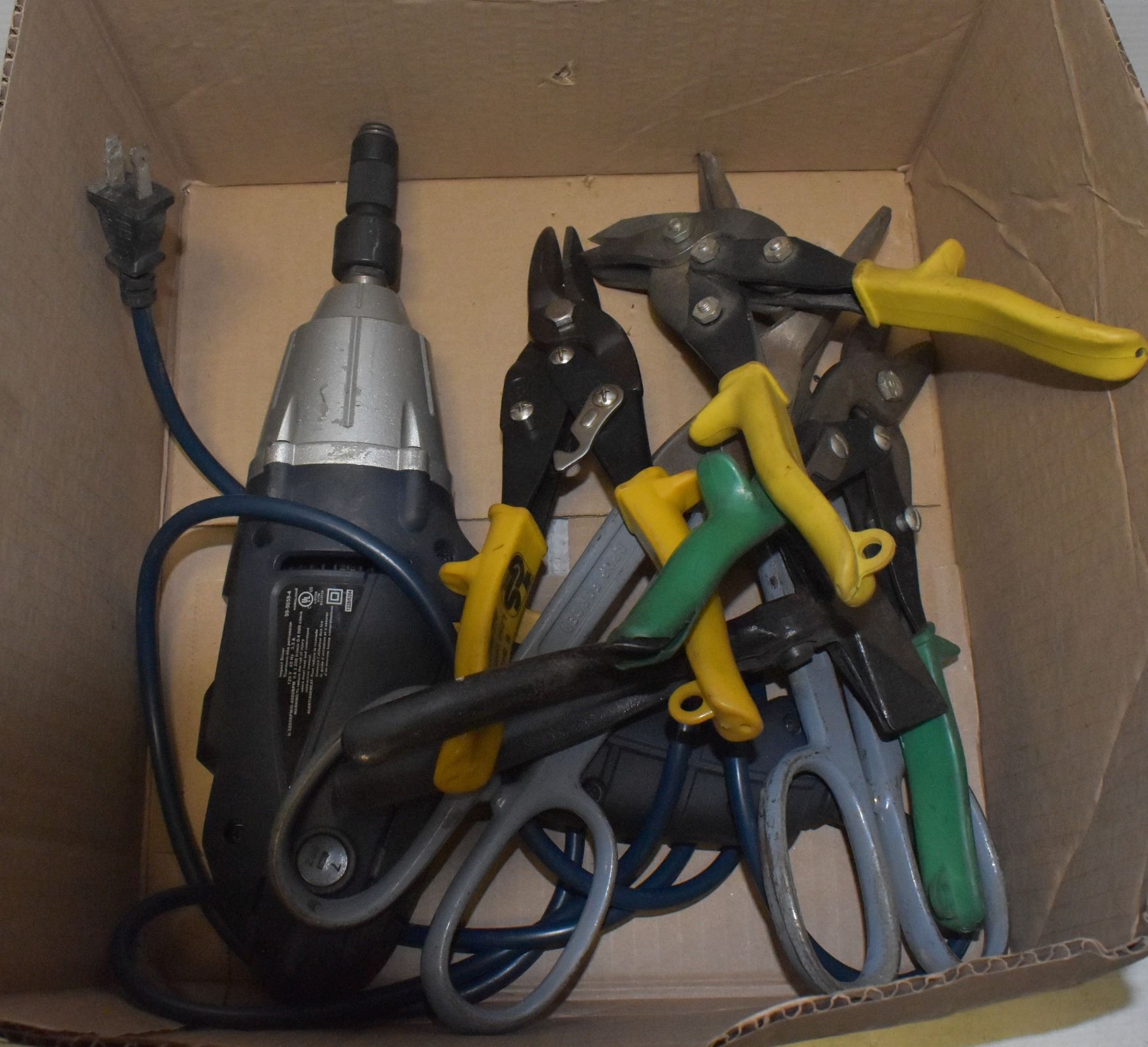 BOX WITH IMPACT DRIVER AND TIN SNIPS