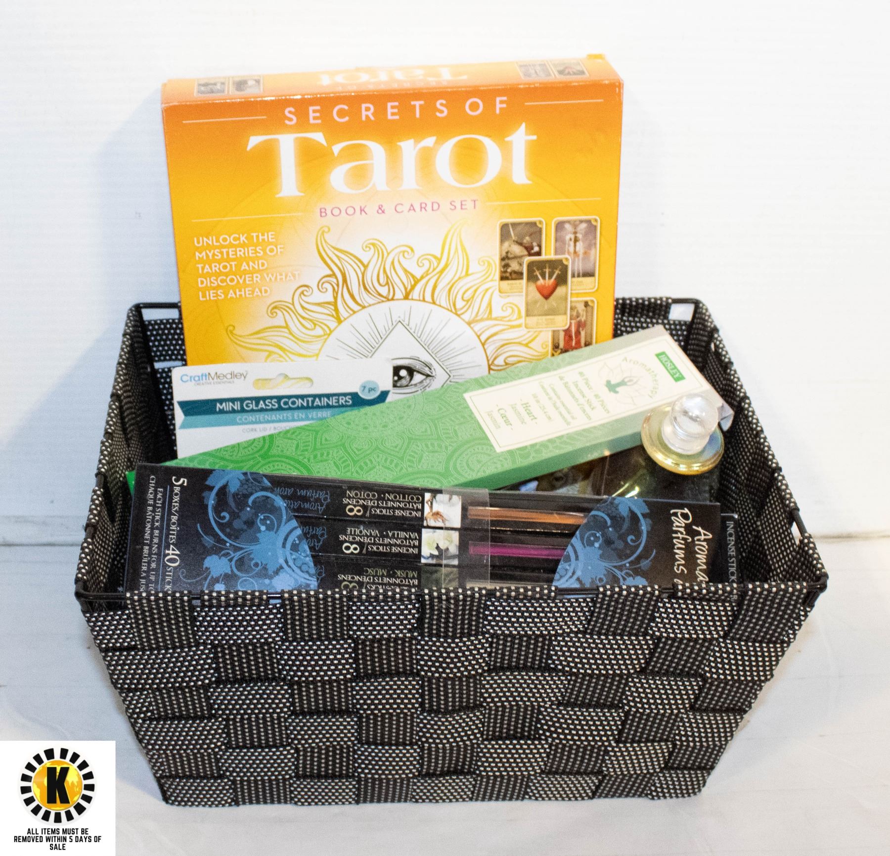 BOX WITH INCENSE, HERBS, CANDLES AND TAROT CARDS