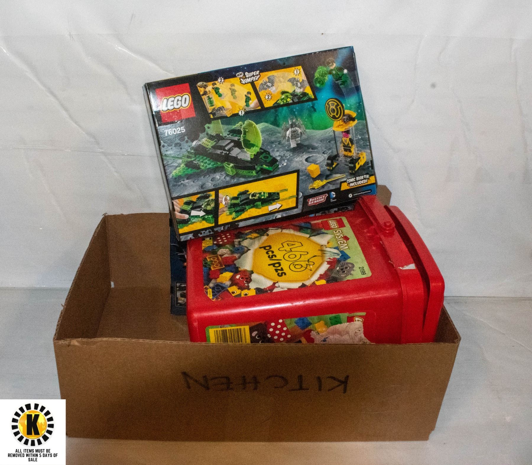 DC SUPER HERO'S 174-PIECE SET, LEGO SYSTEM TUB WITH OVER 466 PIECES, ETC.