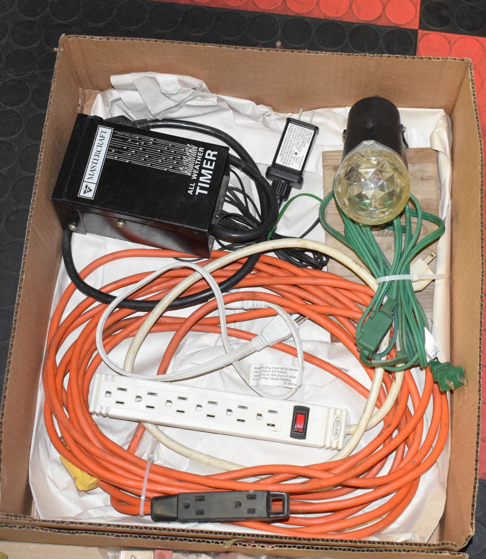 POWER TIMER, 30 FOOT OUTDOOR 3-TAP EXTENSION CORD, OUTDOOR LASER DISPLAY LIGHT "SNOWFLAKE", 6-TAP POWER BAR, ETC.