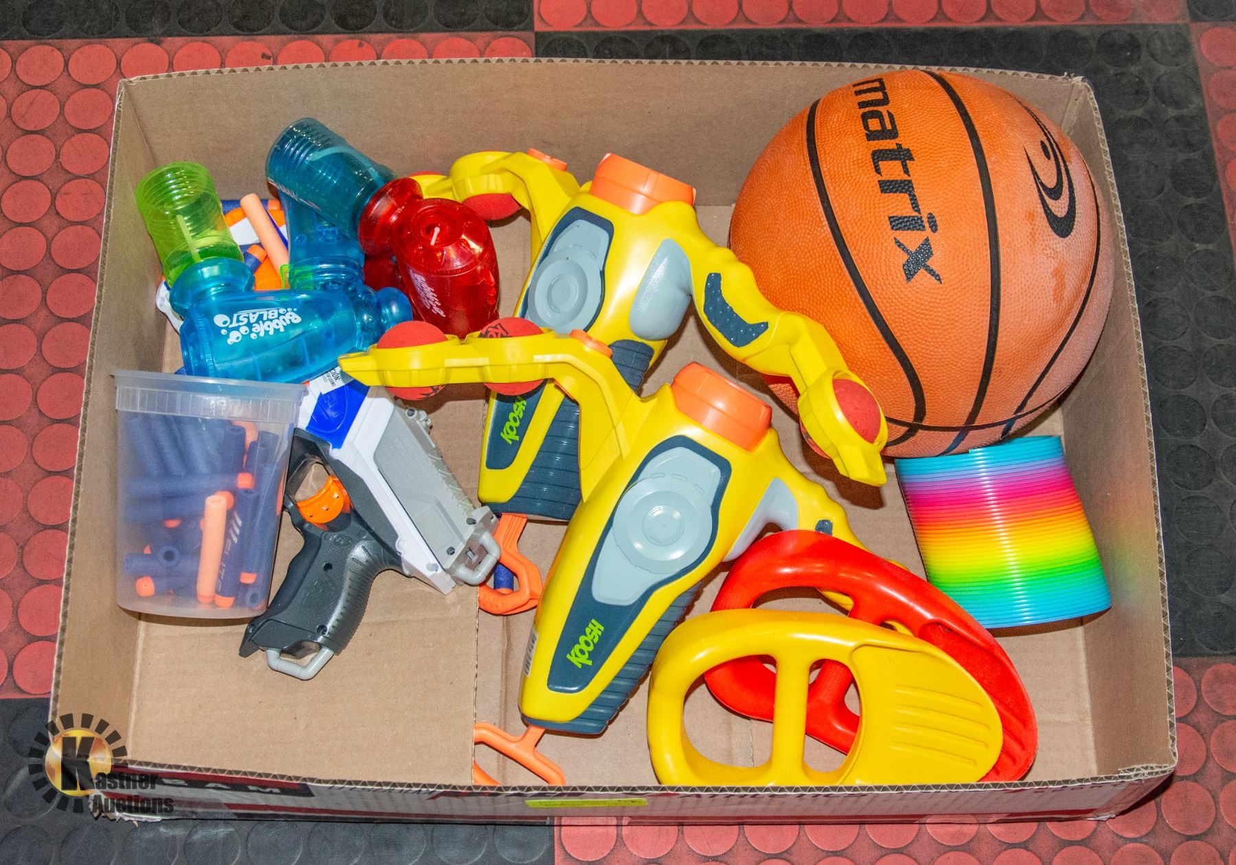 BALL SHOOTERS WITH SOFT BALLS, STRONGARM NERF GUN AND ACCESSORIES, 2 BUBBLE BLASTOS, ETC. **ALL ITEMS MUST BE REMOVED BY 5PM SATURDAY, JUNE 24TH 2023. ALL REMAINING ITEMS WILL BE SUBJECT TO A $6.00 PER DAY STORAGE CHARGE. ANY ITEMS REMAINING AFTER MONDAY, JULY 10TH, 2023 WILL BE CONSIDERED FORFEITED. NO REFUNDS WILL BE ISSUED FOR FORFEITED ITEMS. TO SCHEDULE A PICK UP APPOINTMENT CLICK HERE