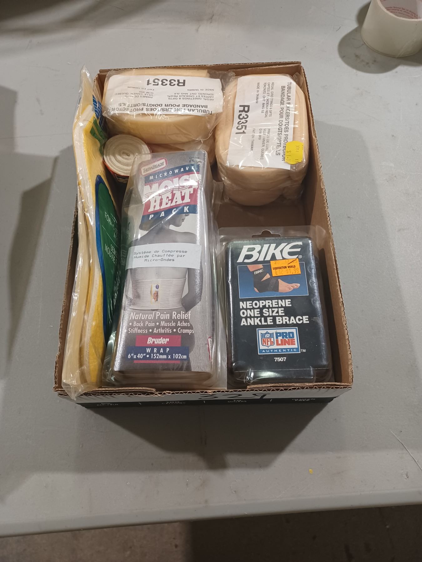 BOX WITH NEW ANGLE BRACE, HEAT PAD AND MISC