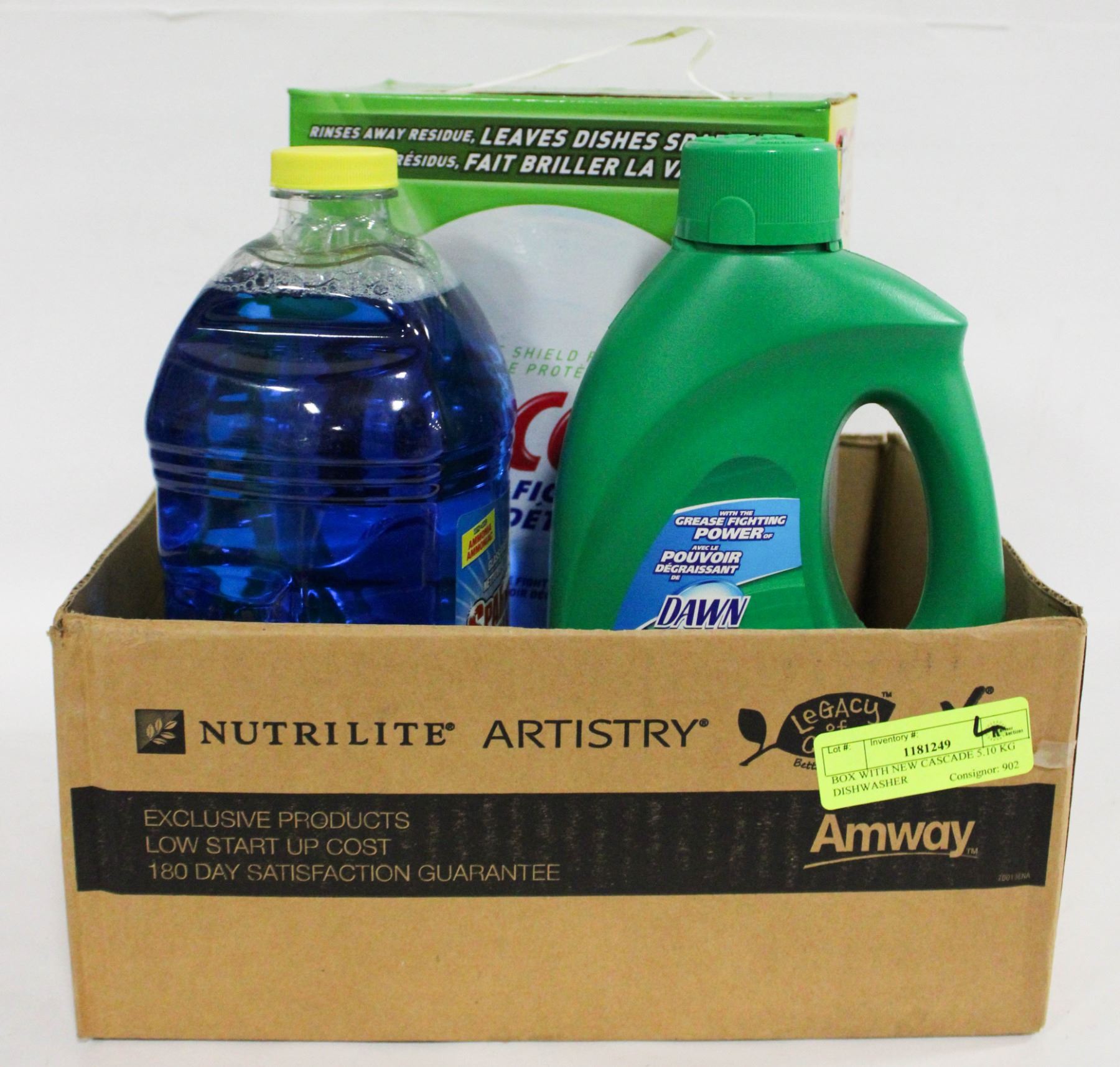 POWDER DETERGENT WITH GREASE FIGHTING POWER OF DAWN, 1.89 LITER OF GLASS CLEANER AND 1.29 LITER OF CASCADE LIQUID DISH DETERGENT WITH DAWN **ALL ITEMS MUST BE REMOVED BY 5PM SATURDAY, MARCH 1ST 2025. ALL REMAINING ITEMS WILL BE SUBJECT TO A $6.00 PER DAY STORAGE CHARGE. ANY ITEMS REMAINING AFTER MONDAY, MARCH 17TH 2025 WILL BE CONSIDERED FORFEITED. NO REFUNDS WILL BE ISSUED FOR FORFEITED ITEMS. TO SCHEDULE A PICK UP APPOINTMENT CLICK HERE