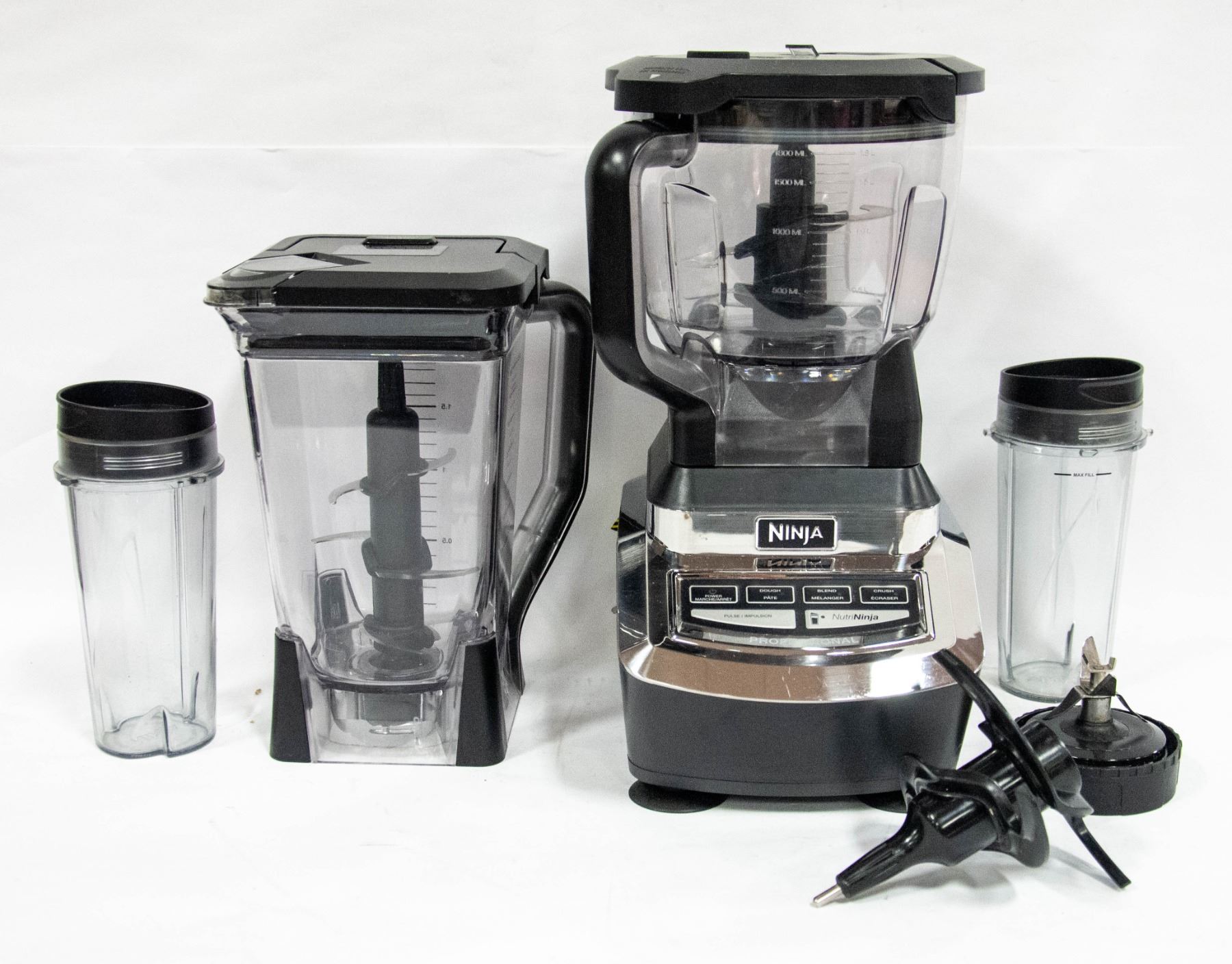 BLENDER/FOOD PROCESSOR SET - INCLUDES: 1.8L PROCESSOR BOWL W/LID, 72 OZ. PITCHER W/LID, 4 MIXER ATTACHMENTS, 2 SMOOTHIE CUPS AND 2 LIDS AND BASE (13 PIECES TOTAL) **ALL ITEMS MUST BE REMOVED BY 5PM SATURDAY, JANUARY 21ST 2023. ALL MAGIC SPACE ITEMS MUST BE REMOVED BY WEDNESDAY, JANUARY 18TH AND ARE LOCATED AT 9058-22 AVENUE SW #102. **ALL REMAINING ITEMS WILL BE SUBJECT TO A $6.00 PER DAY STORAGE CHARGE. ANY ITEMS REMAINING AFTER MONDAY, FEBRUARY 6TH, 2023 WILL BE CONSIDERED FORFEITED. NO REFUNDS WILL BE ISSUED FOR FORFEITED ITEMS. TO SCHEDULE A PICK UP APPOINTMENT CLICK HERE