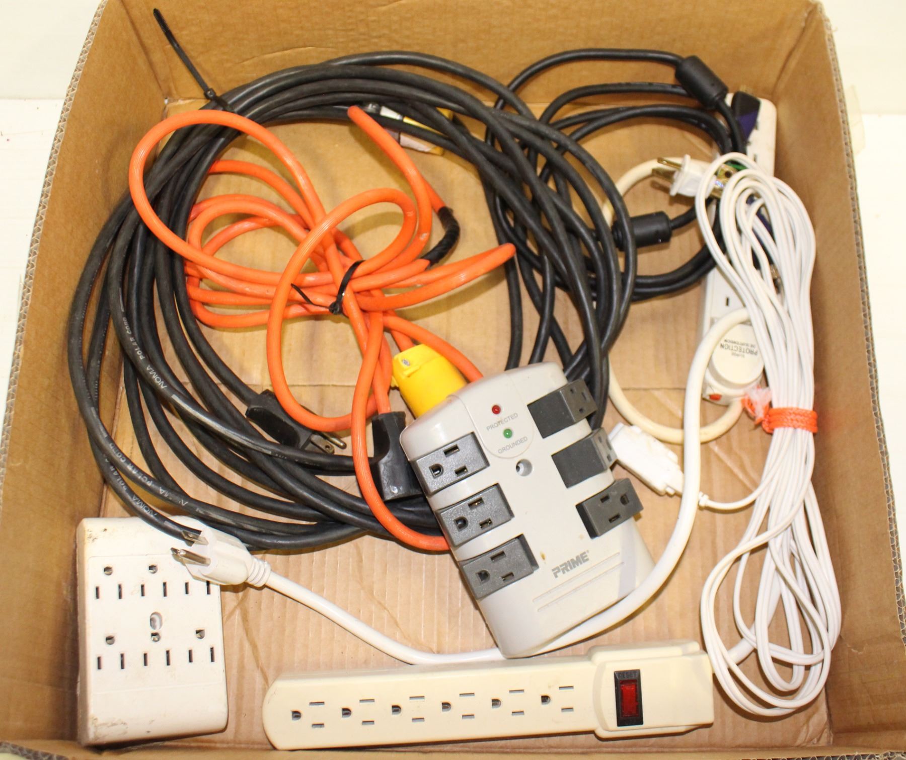BOX WITH OUTDOOR EXTENSION CORDS, INDOOR