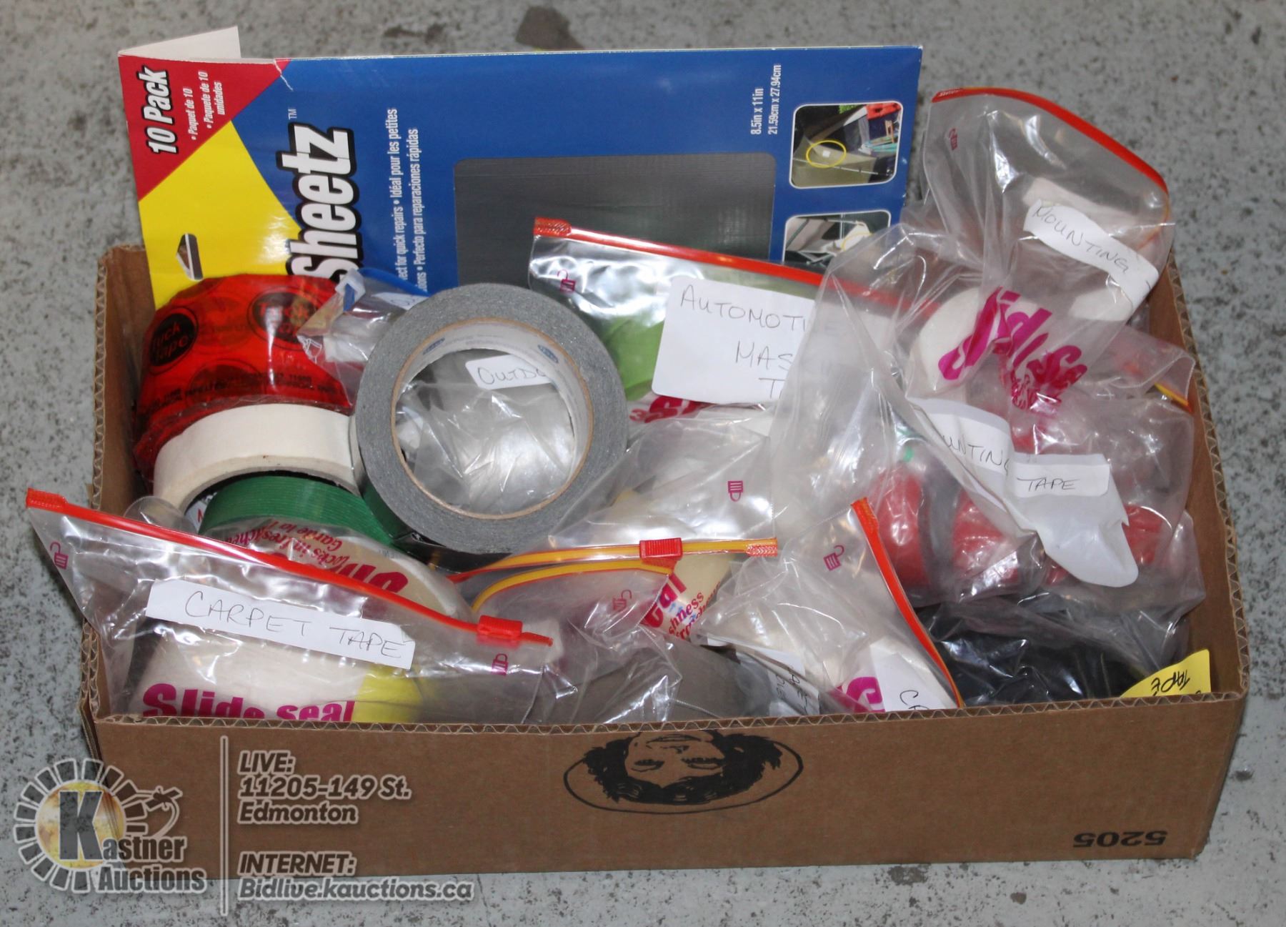 TAPE INCL. 8.5"X10"-DUCT SHEETS DUCT TAPE, CARPET TAPE, MOUNTING TAPE (DOUBLE-SIDED), AUTOMOTIVE MASKING TAPE, ELECTRICAL TAPE, ETC.