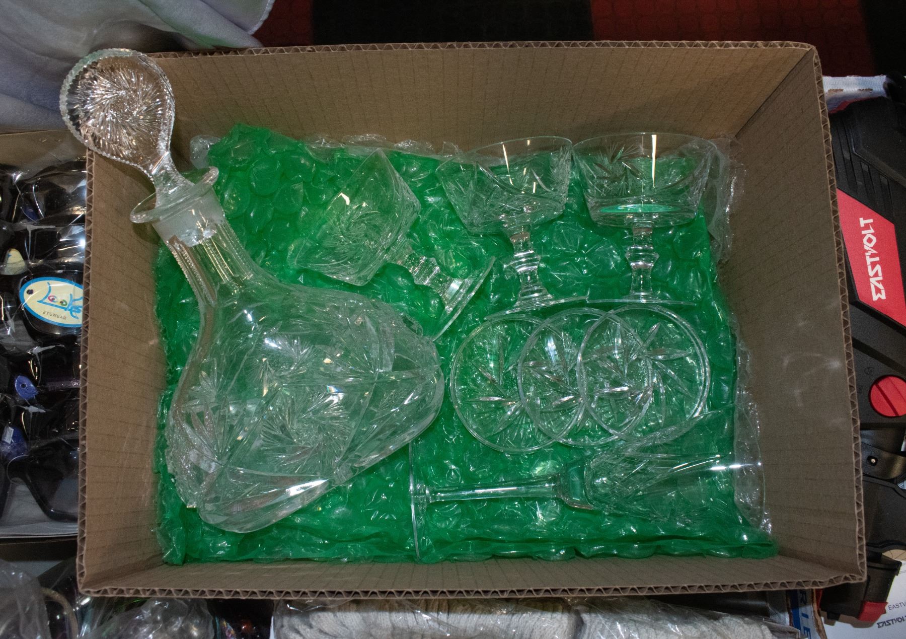 DECANTER, WINE GLASS, 3 COASTERS AND PINWHEEL CRYSTAL DESERTWARE **ALL ITEMS MUST BE REMOVED BY 5PM SATURDAY, JANUARY 21ST 2023. ALL MAGIC SPACE ITEMS MUST BE REMOVED BY WEDNESDAY, JANUARY 18TH AND ARE LOCATED AT 9058-22 AVENUE SW #102. **ALL REMAINING ITEMS WILL BE SUBJECT TO A $6.00 PER DAY STORAGE CHARGE. ANY ITEMS REMAINING AFTER MONDAY, FEBRUARY 6TH, 2023 WILL BE CONSIDERED FORFEITED. NO REFUNDS WILL BE ISSUED FOR FORFEITED ITEMS. TO SCHEDULE A PICK UP APPOINTMENT CLICK HERE