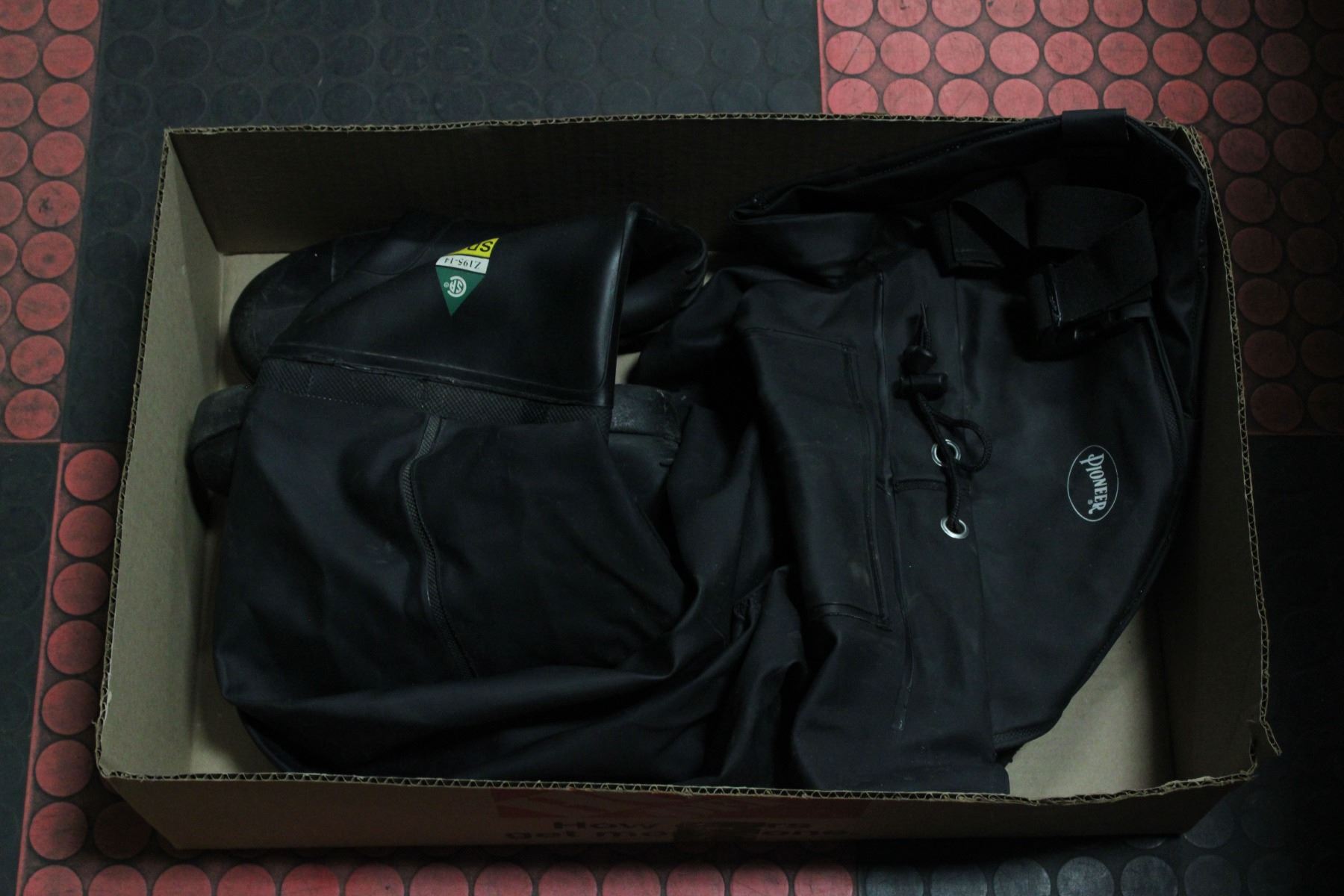 (MEN'S SIZE 8) - CSA CLASS 1 STEEL TOE/STEEL PLATE BOOT, STATIC DISSIPATIVE, HEAVY DUTY .50MM PVC COATING, ADJUSTABLE ELASTIC SUSPENDERS, FRONT CHEST POUCH (MSRP-$158) **ALL ITEMS MUST BE REMOVED BY 5PM SATURDAY, APRIL 5TH 2025. ALL REMAINING ITEMS WILL BE SUBJECT TO A $6.00 PER DAY STORAGE CHARGE. ANY ITEMS REMAINING AFTER MONDAY, APRIL 21ST 2025 WILL BE CONSIDERED FORFEITED. NO REFUNDS WILL BE ISSUED FOR FORFEITED ITEMS. TO SCHEDULE A PICK UP APPOINTMENT CLICK HERE
