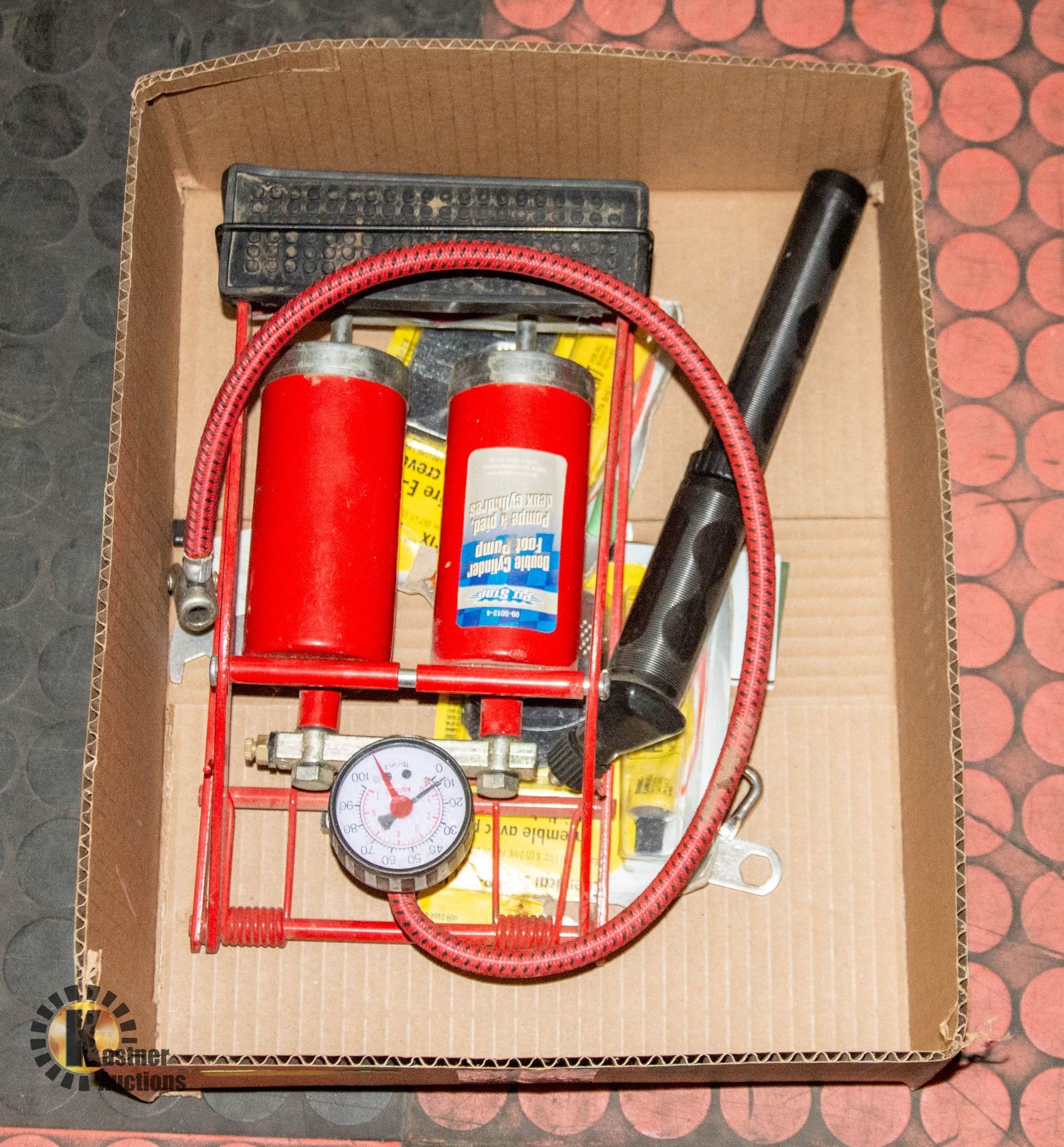 PUMP WITH GAUGE, 2 LITER REPAIR KITS, BIKE TOOLS, ETC. **ALL ITEMS MUST BE REMOVED BY 5PM SATURDAY, JUNE 1ST 2024. ALL REMAINING ITEMS WILL BE SUBJECT TO A $6.00 PER DAY STORAGE CHARGE. ANY ITEMS REMAINING AFTER MONDAY, JUNE 17TH 2024 WILL BE CONSIDERED FORFEITED. NO REFUNDS WILL BE ISSUED FOR FORFEITED ITEMS. TO SCHEDULE A PICK UP APPOINTMENT CLICK HERE