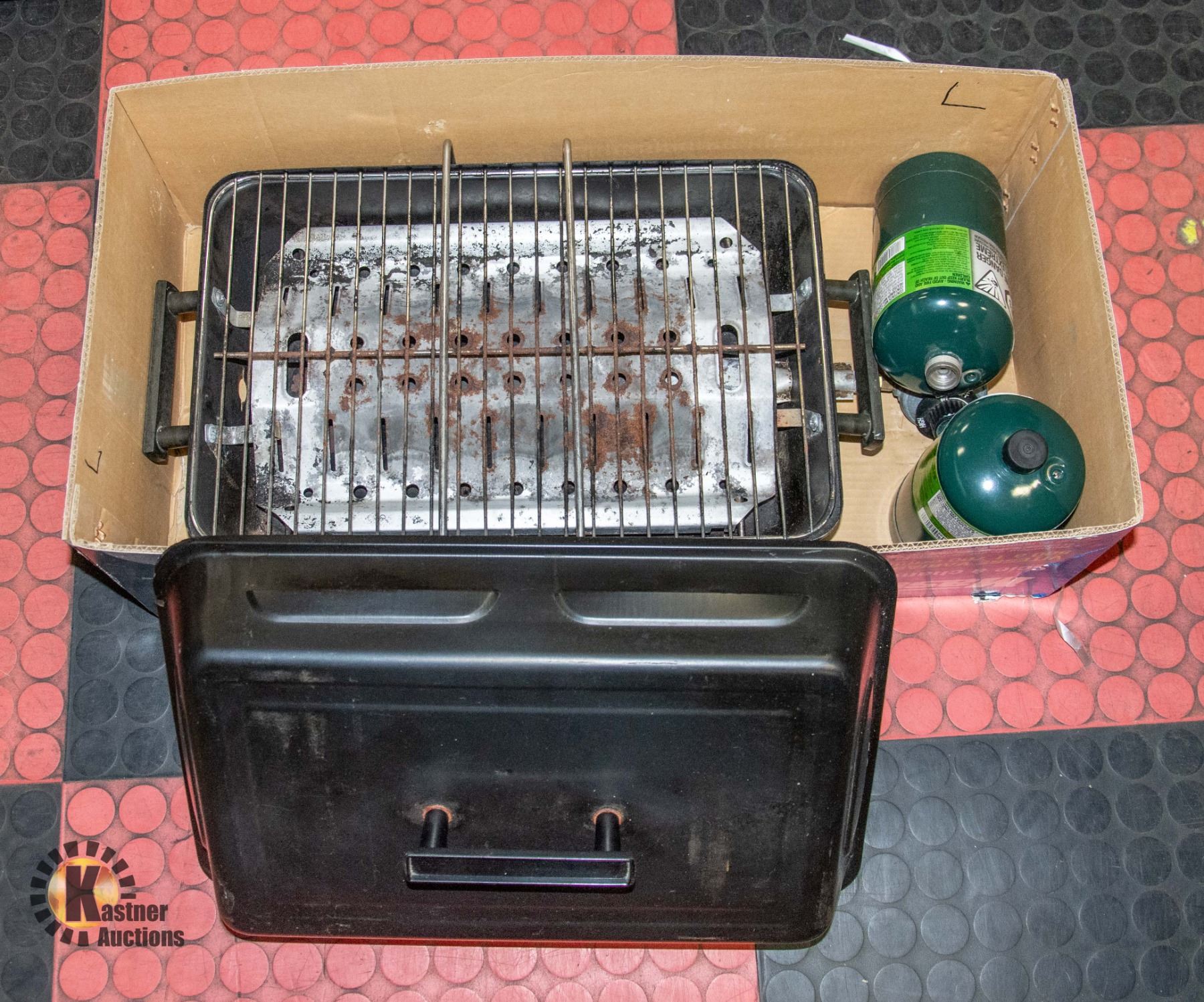 LEGS SECURES LID, ADJUSTABLE TEMPERATURE, INCLUDES TWO NEW 16 OZ. COLEMAN PROPANE CAMP GAS BOTTLES **SHIPPING NOT AVAILABLE** **ALL ITEMS MUST BE REMOVED BY 5PM SATURDAY, AUGUST 5TH 2023. ALL REMAINING ITEMS WILL BE SUBJECT TO A $6.00 PER DAY STORAGE CHARGE. ANY ITEMS REMAINING AFTER MONDAY, AUGUST 21ST, 2023 WILL BE CONSIDERED FORFEITED. NO REFUNDS WILL BE ISSUED FOR FORFEITED ITEMS. TO SCHEDULE A PICK UP APPOINTMENT CLICK HERE