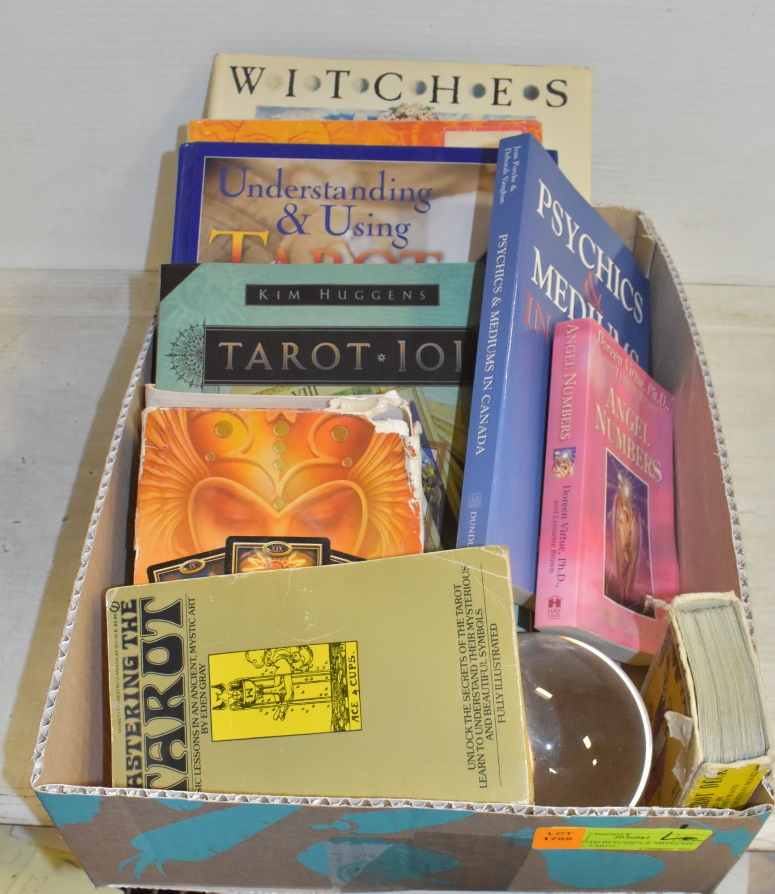 BOX WITH PSYCHICS & MEDIUMS BOOKS, TAROT