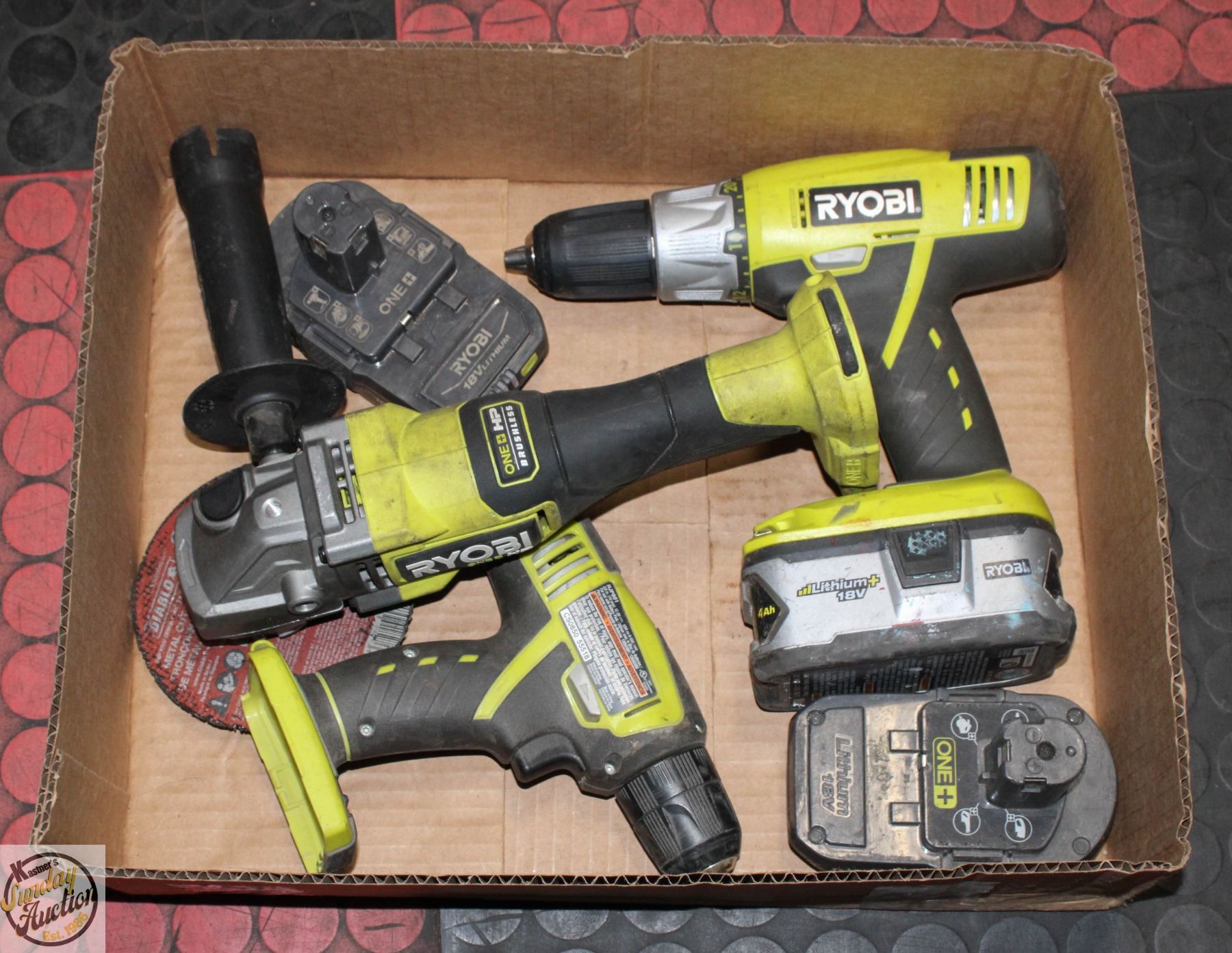 TOOLS INCL. 1/2" DRILL, 3/8" DRILL-12 VOLT, 18 VOLT GRINDER/ZIP CUTTER, 3 BATTERIES - 1 CHARGED - 2 NEED CHARGE **ALL ITEMS MUST BE REMOVED BY 5PM SATURDAY, MAY 10TH 2025. ALL REMAINING ITEMS WILL BE SUBJECT TO A $6.00 PER DAY STORAGE CHARGE. ANY ITEMS REMAINING AFTER MONDAY, MAY 26TH 2025 WILL BE CONSIDERED FORFEITED. NO REFUNDS WILL BE ISSUED FOR FORFEITED ITEMS. TO SCHEDULE A PICK UP APPOINTMENT CLICK HERE