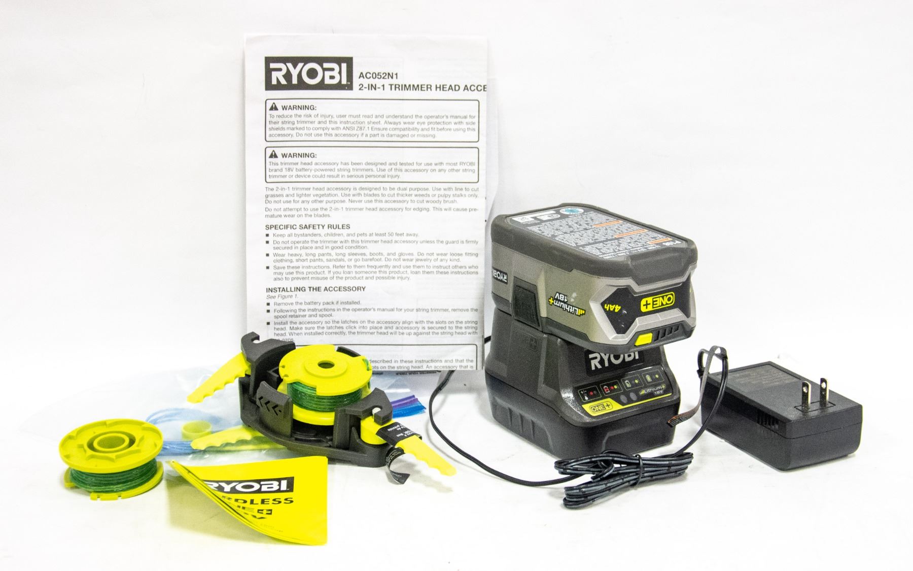 CHARGER AND RYOBI 2-IN-1 TRIMMER HEAD ACCESSORY KIT **ALL ITEMS MUST BE REMOVED BY 5PM SATURDAY, JANUARY 28TH 2023. **ALL REMAINING ITEMS WILL BE SUBJECT TO A $6.00 PER DAY STORAGE CHARGE. ANY ITEMS REMAINING AFTER MONDAY, FEBRUARY 13TH, 2023 WILL BE CONSIDERED FORFEITED. NO REFUNDS WILL BE ISSUED FOR FORFEITED ITEMS. TO SCHEDULE A PICK UP APPOINTMENT CLICK HERE