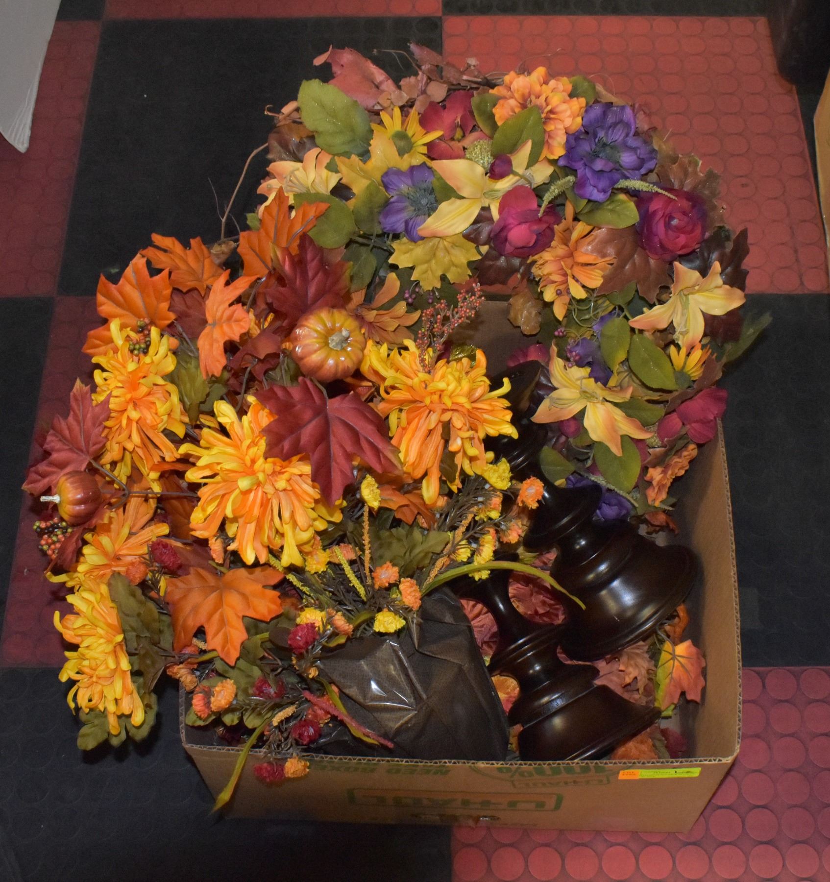 FLOWER PLANT IN WRAPPED CONTAINER, 2 POTTERY BARN TURNED WOOD PILLAR CANDLE STANDS, SILK FLOWER GARLAND, ETC.**ALL ITEMS MUST BE REMOVED BY 5PM MONDAY, OCTOBER 17TH, 2022. ALL REMAINING ITEMS WILL BE SUBJECT TO A $6.00 PER DAY STORAGE CHARGE. ANY ITEMS REMAINING AFTER MONDAY, OCTOBER 29, 2022 WILL BE CONSIDERED FORFEITED. NO REFUNDS WILL BE ISSUED FOR FORFEITED ITEMS. TO SCHEDULE A PICK UP APPOINTMENT CLICK HERE