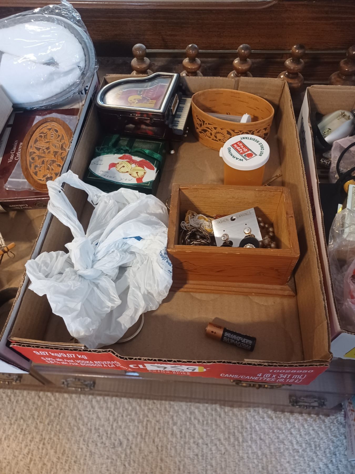 BOX WITH SOME JEWLERY, WATCHES AND MISC ITEMS