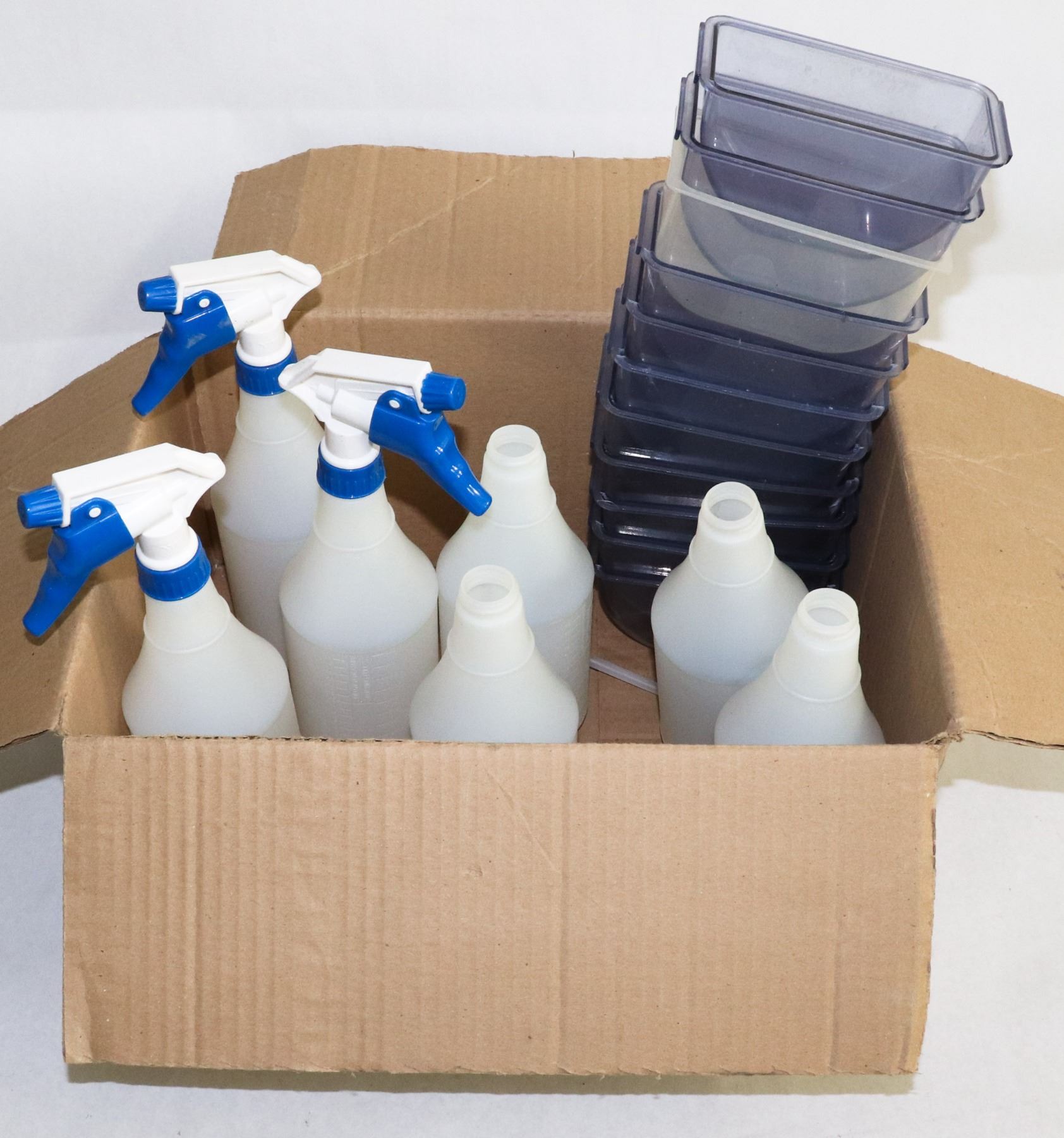 BOX WITH SPRAY BOTTLE BOTTOMS, AND CONDEMENT