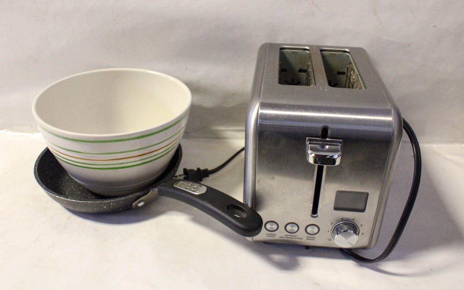 BOX WITH TOASTER LARGE BOWL+ROCK FRYING PAN