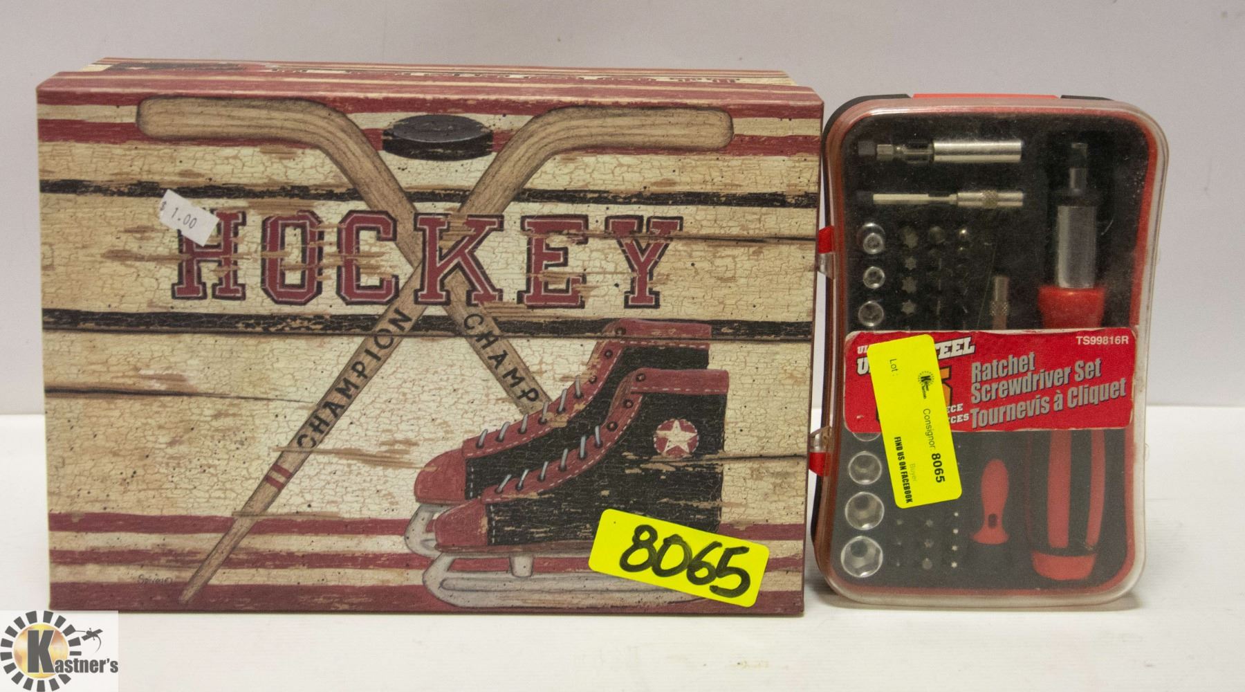BOX WITH TOOL SET AND HOCKEY BOX
