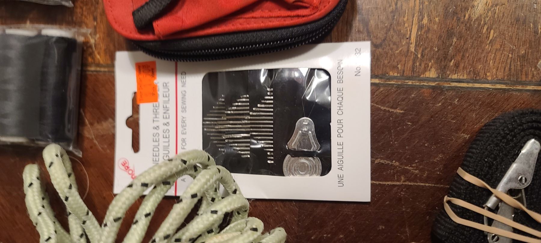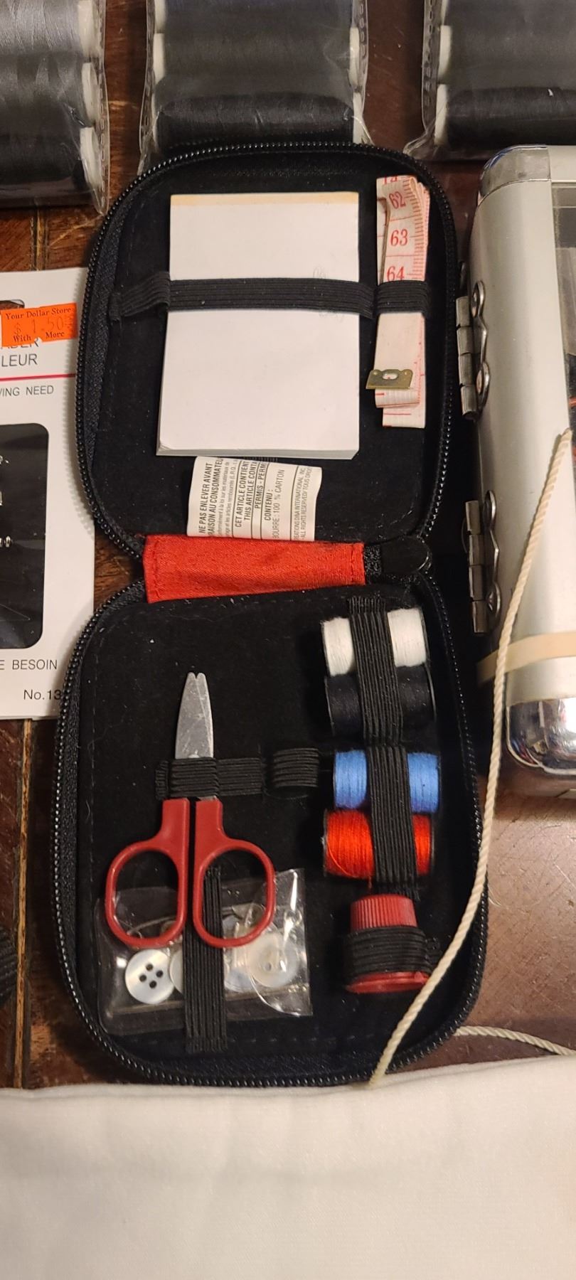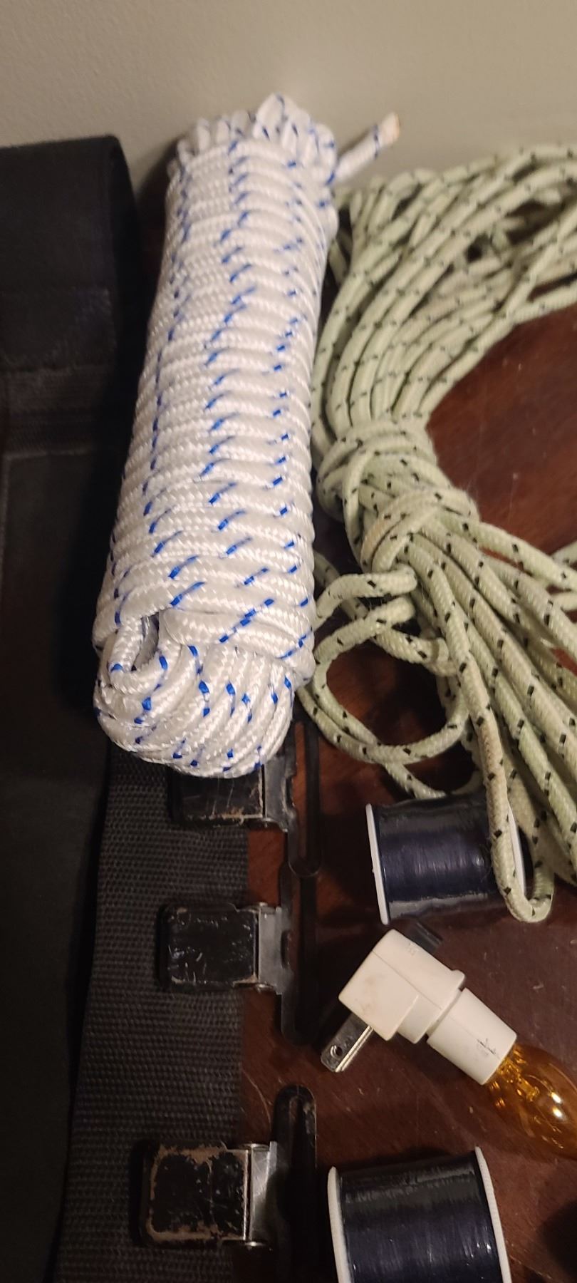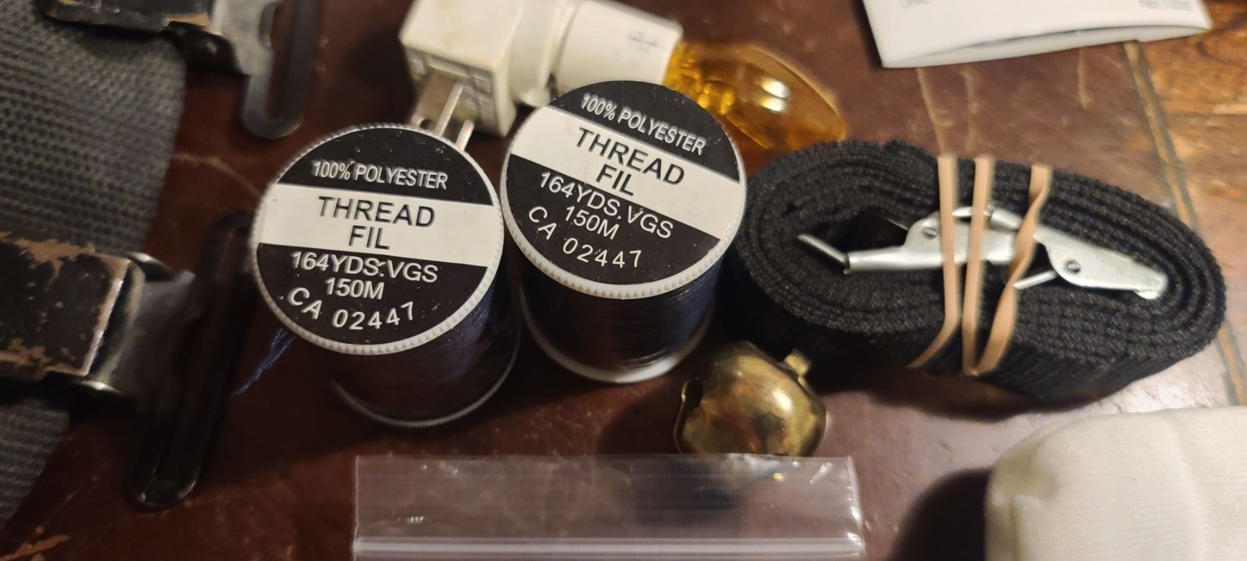 BOX WITH TWO 100 ROLLS OF ROPE AND SEWING SUPPLIES