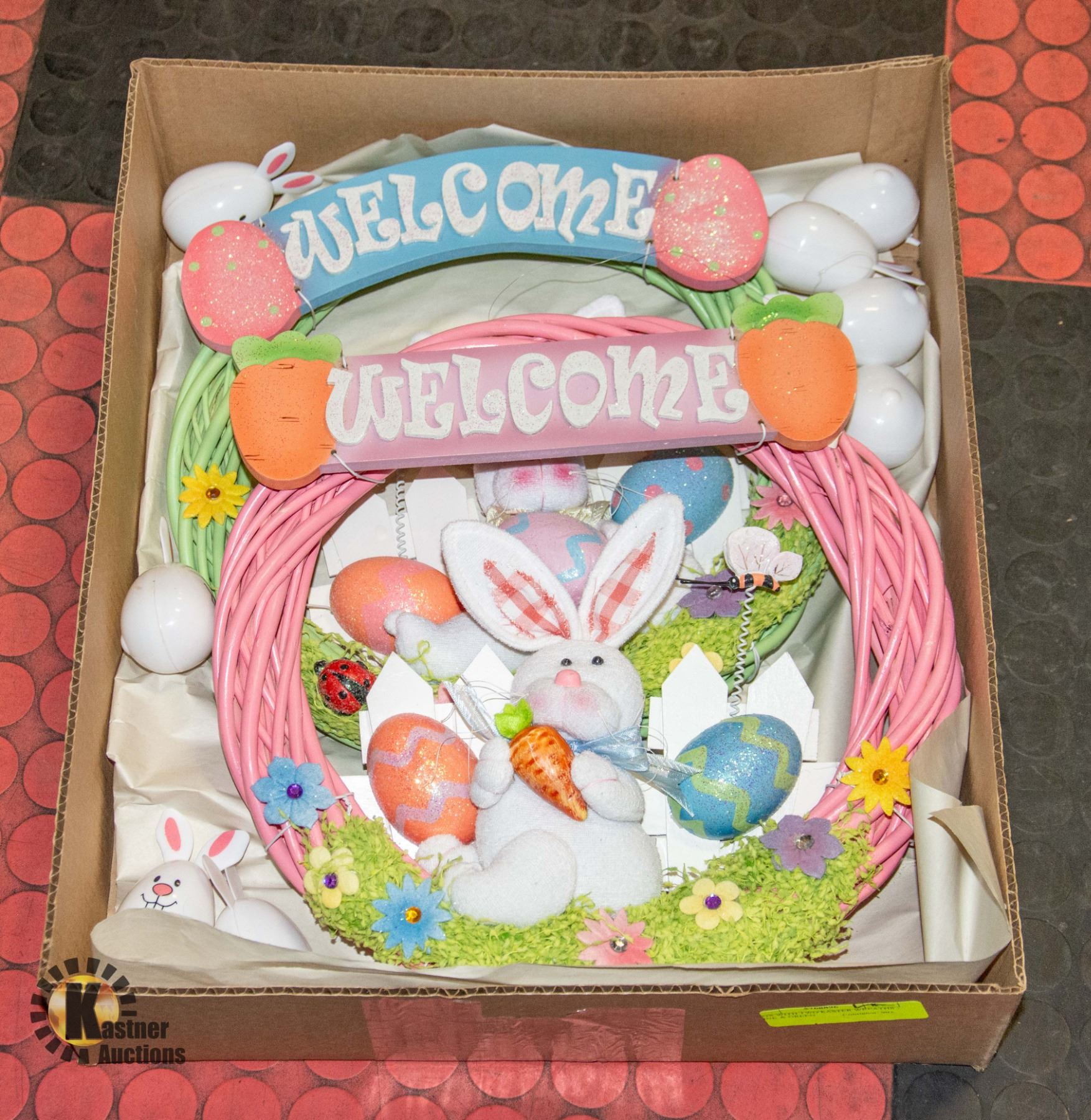 WITH EASTER BUNNY AND WELCOME SIGN - 13"-DIAMETER **ALL ITEMS MUST BE REMOVED BY 5PM SATURDAY, MARCH 23RD 2024. ALL REMAINING ITEMS WILL BE SUBJECT TO A $6.00 PER DAY STORAGE CHARGE. ANY ITEMS REMAINING AFTER MONDAY, APRIL 8TH, 2023 WILL BE CONSIDERED FORFEITED. NO REFUNDS WILL BE ISSUED FOR FORFEITED ITEMS. TO SCHEDULE A PICK UP APPOINTMENT CLICK HERE