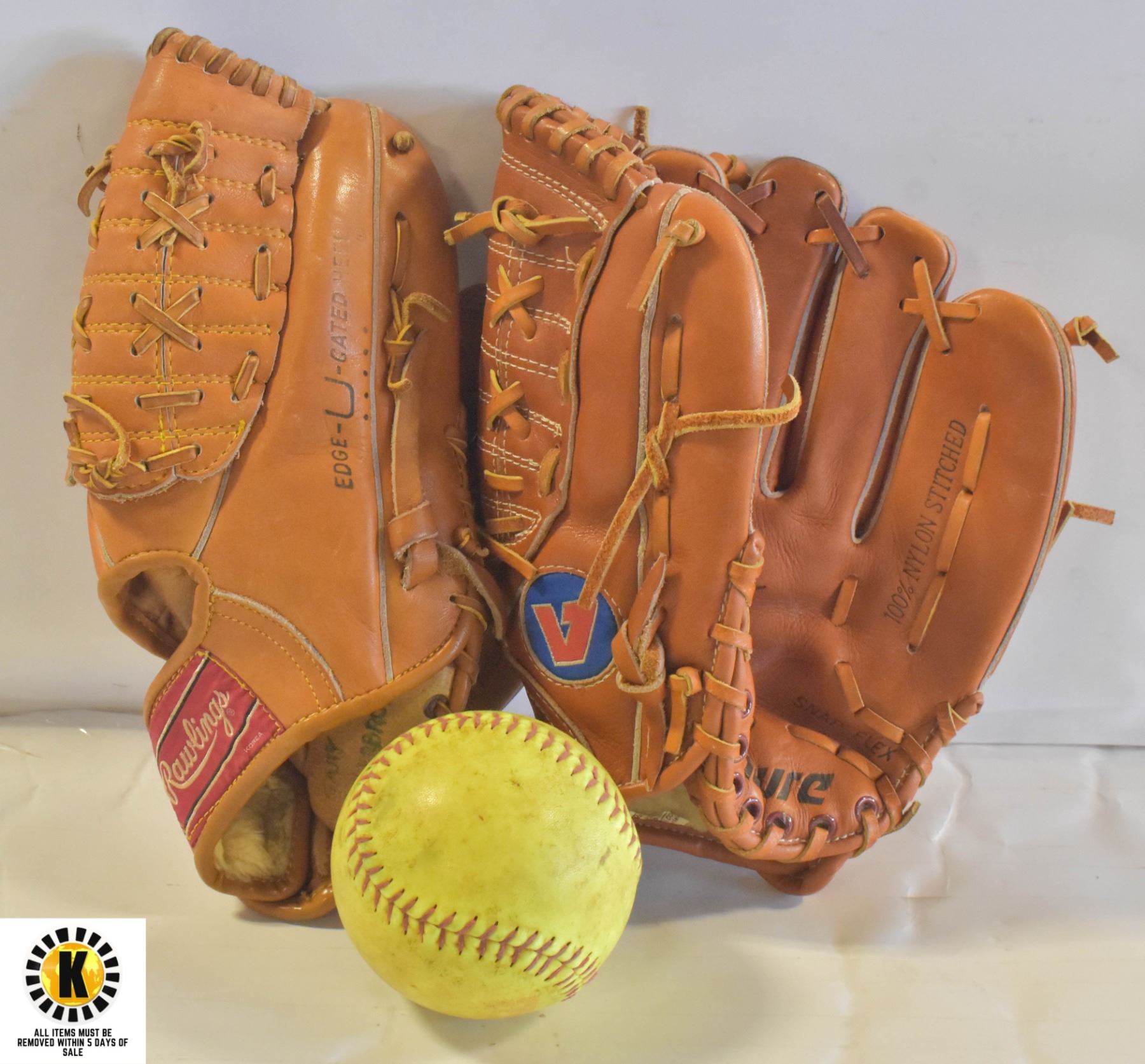 INCL. RAWLINGS "REGGIE JACKSON" PG38 AND VENTURE 775 (BOTH ALL NATURAL LEATHER GLOVES)