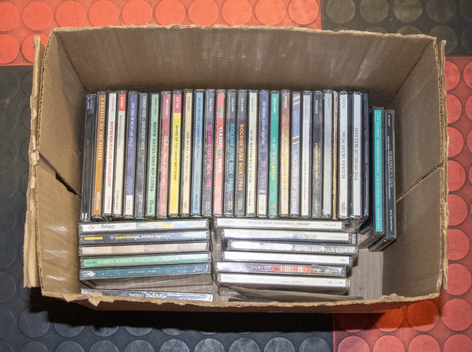 BOX WITH VARIOUS CDS, MOSTLY ROCK