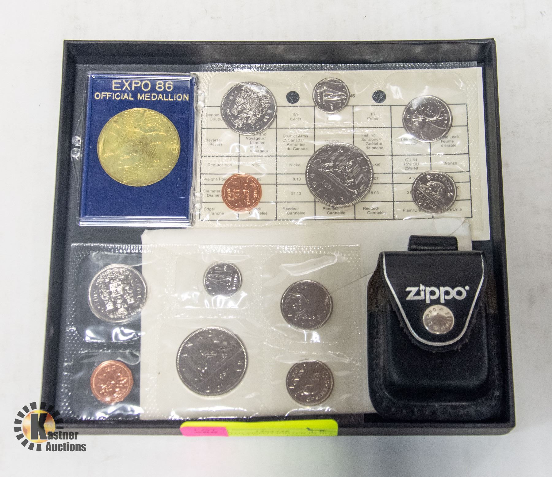 CANADIAN MINT UNCIRCULATED 1982 AND 1984 COIN SETS AND EXPO 86 OFFICIAL MEDALLION **ALL ITEMS MUST BE REMOVED BY 5PM SATURDAY, NOVEMBER 30TH 2024. ALL REMAINING ITEMS WILL BE SUBJECT TO A $6.00 PER DAY STORAGE CHARGE. ANY ITEMS REMAINING AFTER MONDAY, DECEMBER 16TH 2024 WILL BE CONSIDERED FORFEITED. NO REFUNDS WILL BE ISSUED FOR FORFEITED ITEMS. TO SCHEDULE A PICK UP APPOINTMENT CLICK HERE