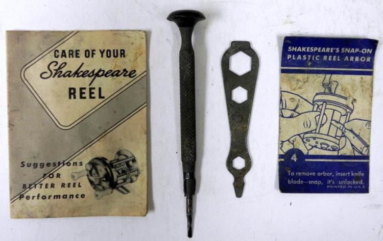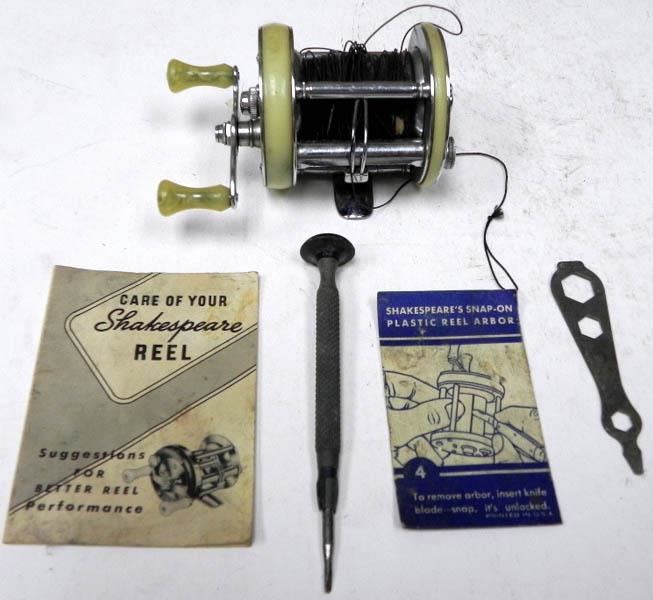 THIS IS A BOXED 1965 SHAKESPEARE FISHING REEL-ORIGINAL BOX. INSTRUCTIONS, TOOLS.