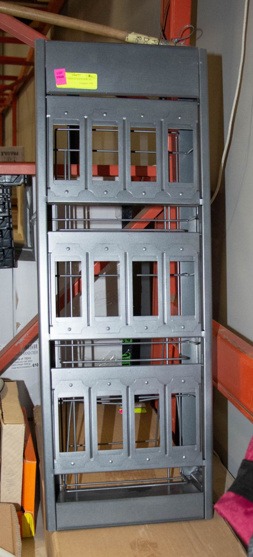 HOLDS 12 BOXES AND STANDS ON ITS OWN **ALL ITEMS MUST BE REMOVED BY 5PM SATURDAY, MAY 13TH 2023. ALL REMAINING ITEMS WILL BE SUBJECT TO A $6.00 PER DAY STORAGE CHARGE. ANY ITEMS REMAINING AFTER MONDAY, MAY 29TH, 2023 WILL BE CONSIDERED FORFEITED. NO REFUNDS WILL BE ISSUED FOR FORFEITED ITEMS. TO SCHEDULE A PICK UP APPOINTMENT CLICK HERE