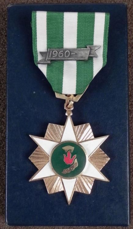 OFFERED HERE IS AN ORIGINAL BOXED VIETNAM SERVICE MEDAL, FROM 1960 WITH RIBBON & BAR. THE MEDAL HAS A GOLD, WHITE & BROWN ENAMEL. THE AWARD IS NAMED ON THE REVERSE WITH A BOX. *