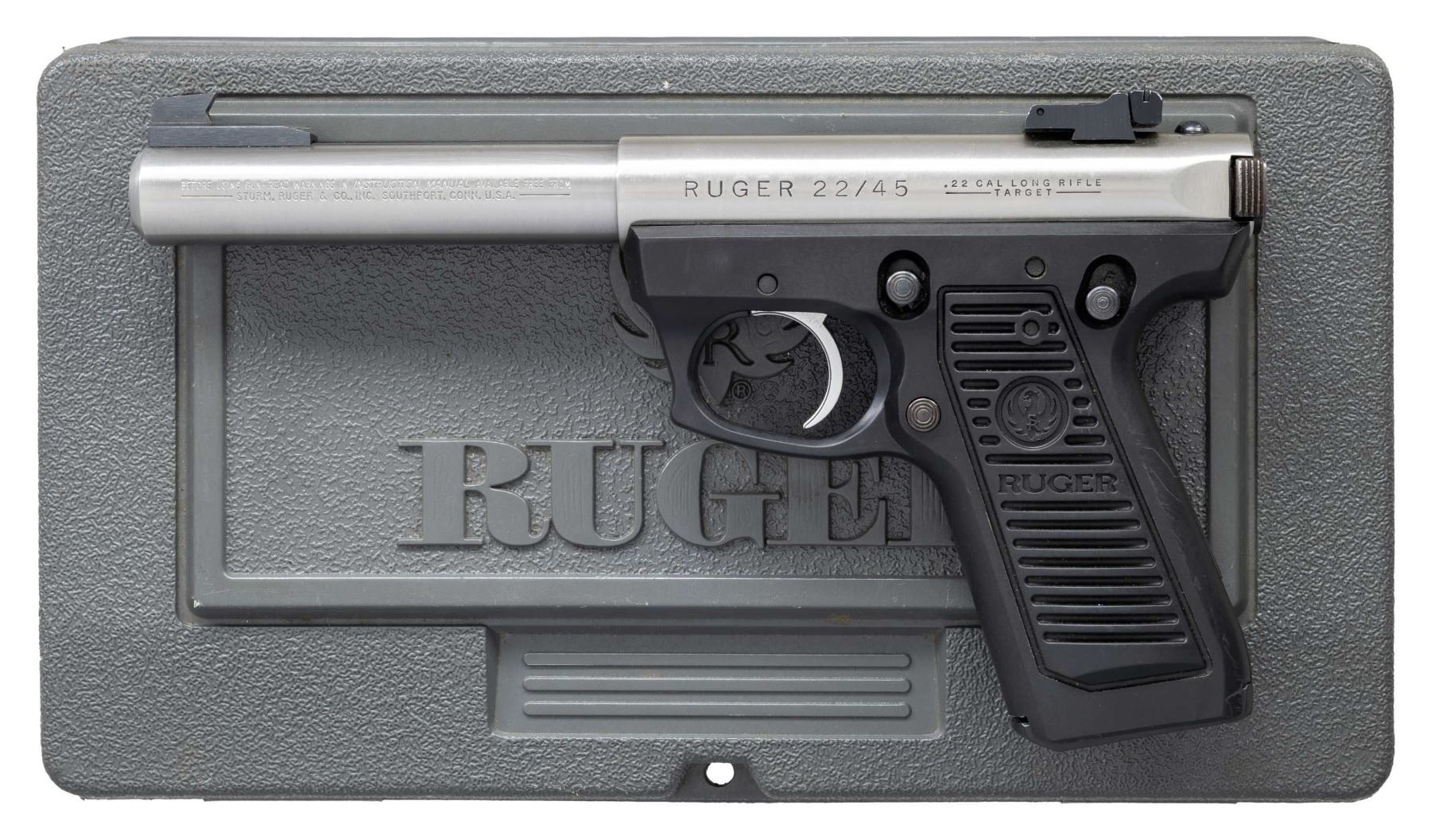 BOXED RUGER 22/45 TARGET SEMI-AUTO PISTOL.