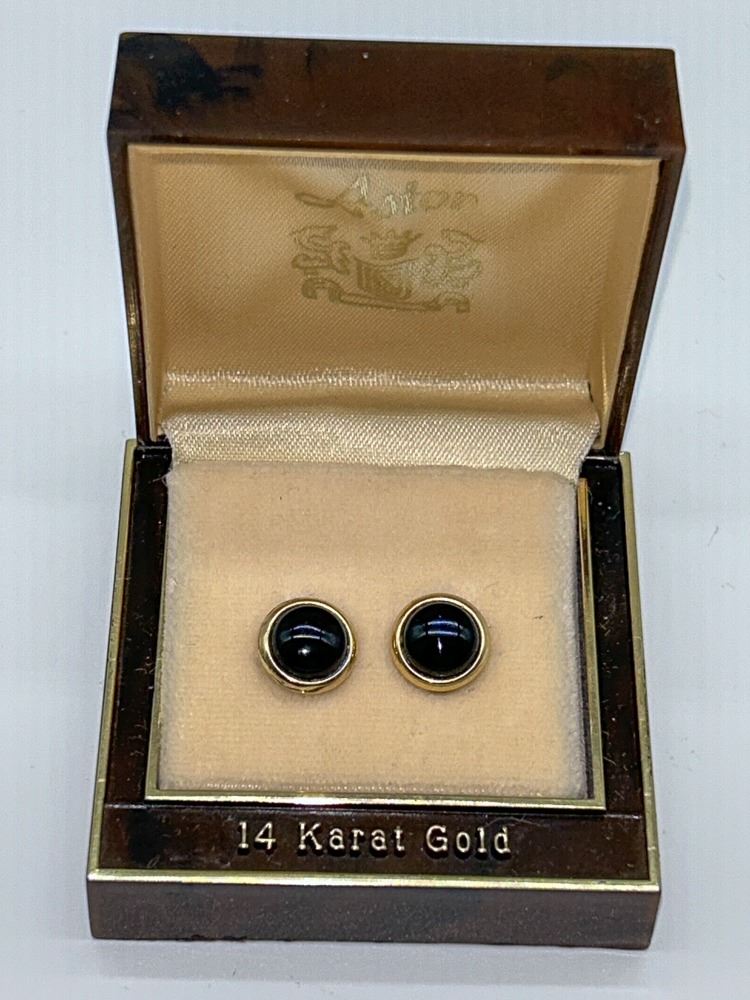 BOXED SET 14K GOLD BLACK ONYX EARRINGS