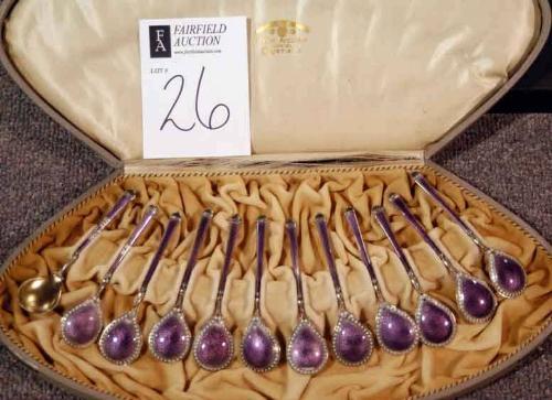 SILVER SPOONS, David Andersen, <BR> Norway, each 4", <BR> condition: three with enamel chiping <BR> Continental U.S. shipping not including insurance, $20 <BR>