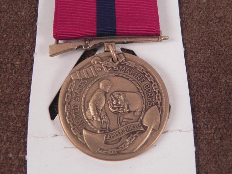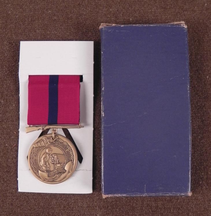 BOXED U.S. MARINE CORPS GOOD CONDUCT MEDAL. * * RIBBON-RIFLE * & MEDAL IN BLUE ISSUE BOX