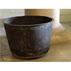 BOXES AND OBJECTS - A 19th century copper log bin, with riveted seams, 34in diam, 25in high (originally a boiler liner)
