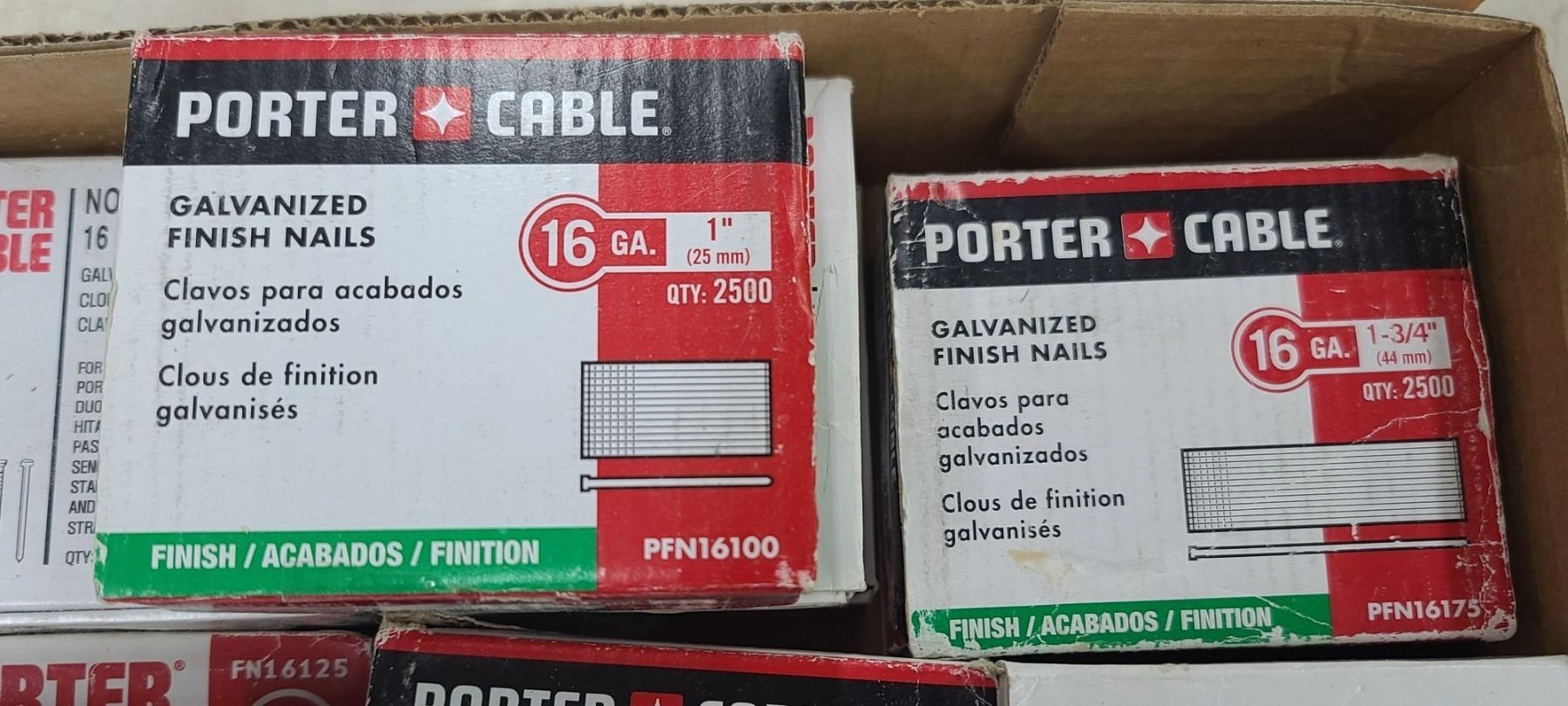 BOXES OF ASORTED FINISHING NAILS - PORTER CBLE